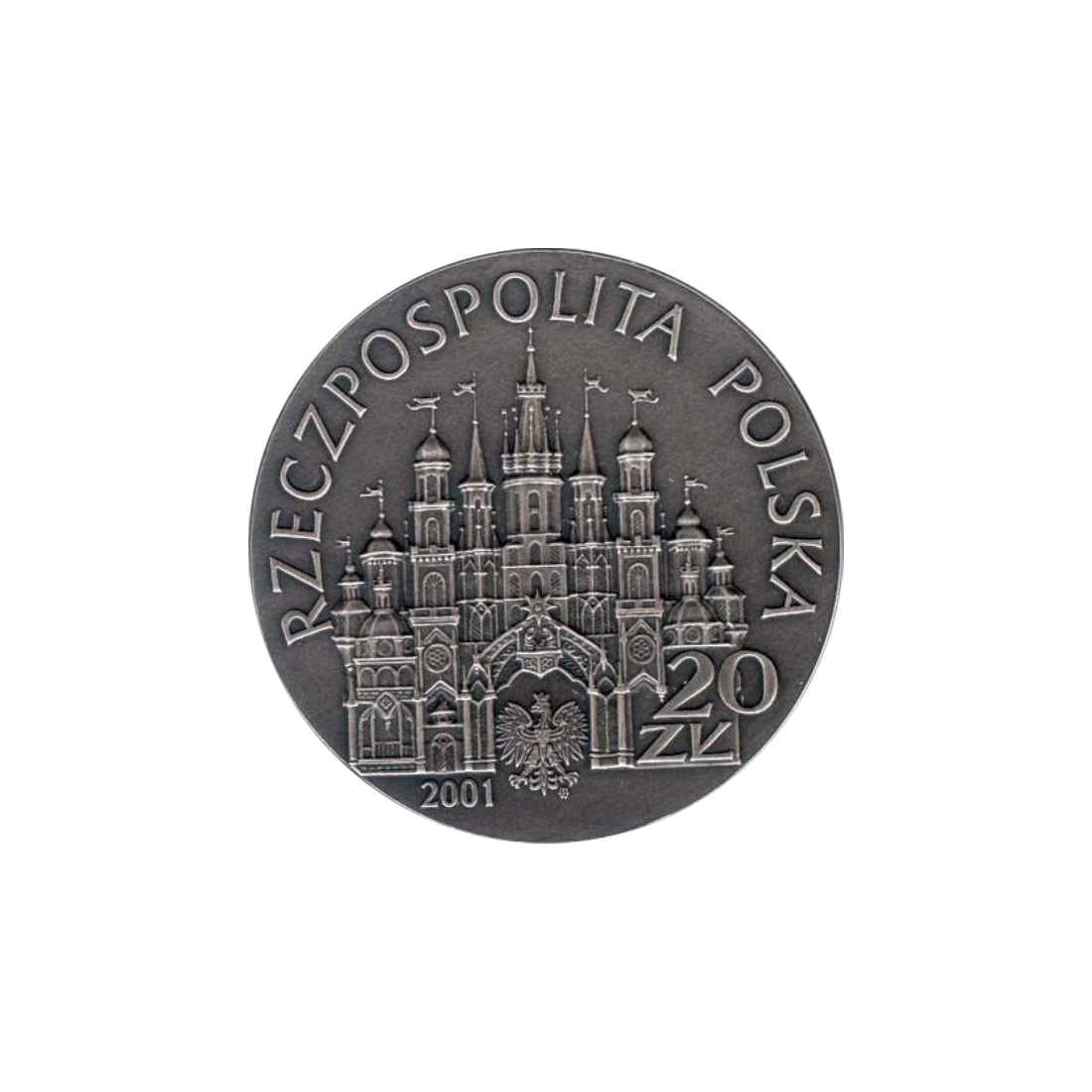 Awers monety przedstawia wizerunek orła ustalonego dla godła Rzeczypospolitej Polskiej, otoczony napisem „RZECZPOSPOLITA POLSKA” oraz oznaczeniem roku emisji „2001”. Poniżej orła znajduje się nominał „20 ZŁ”.