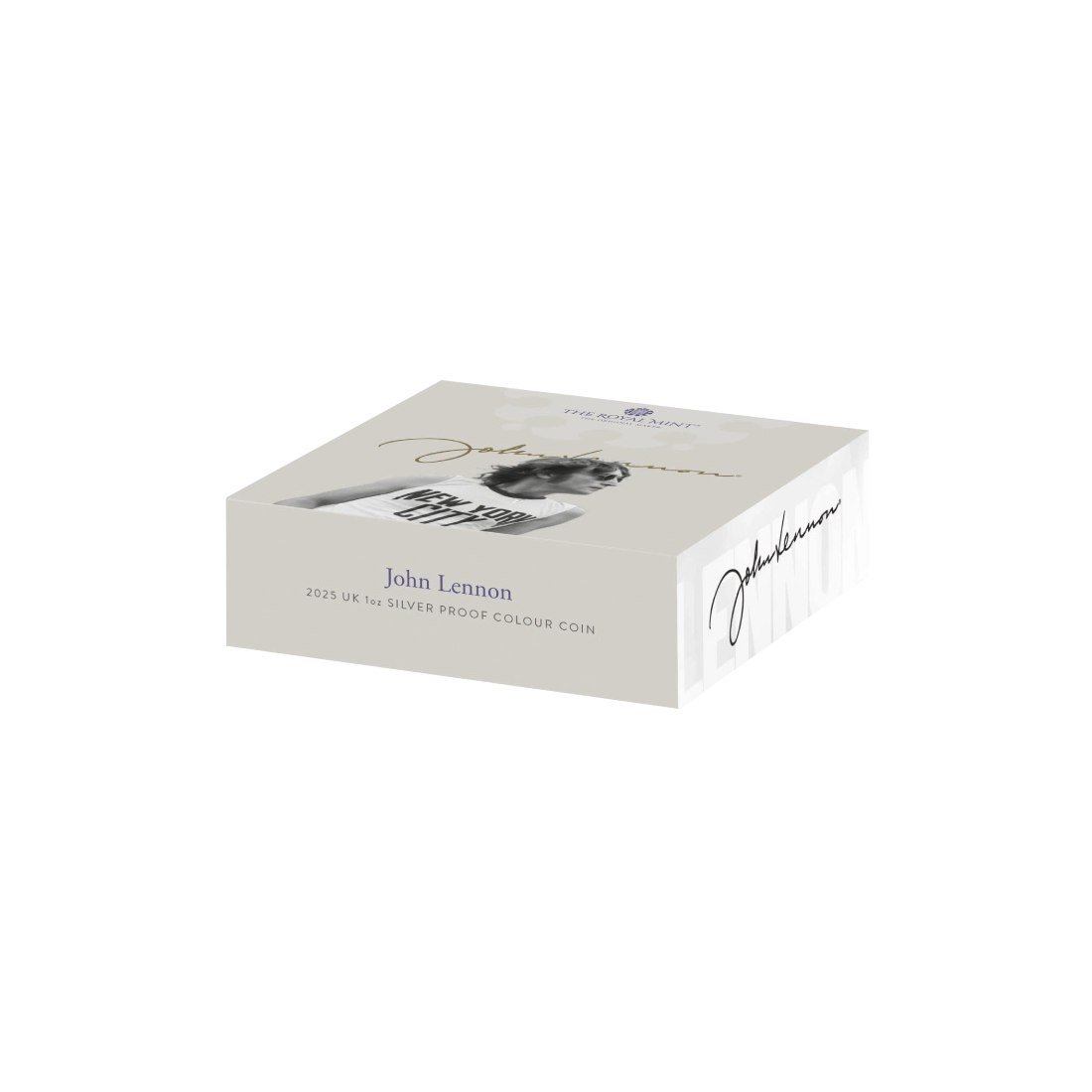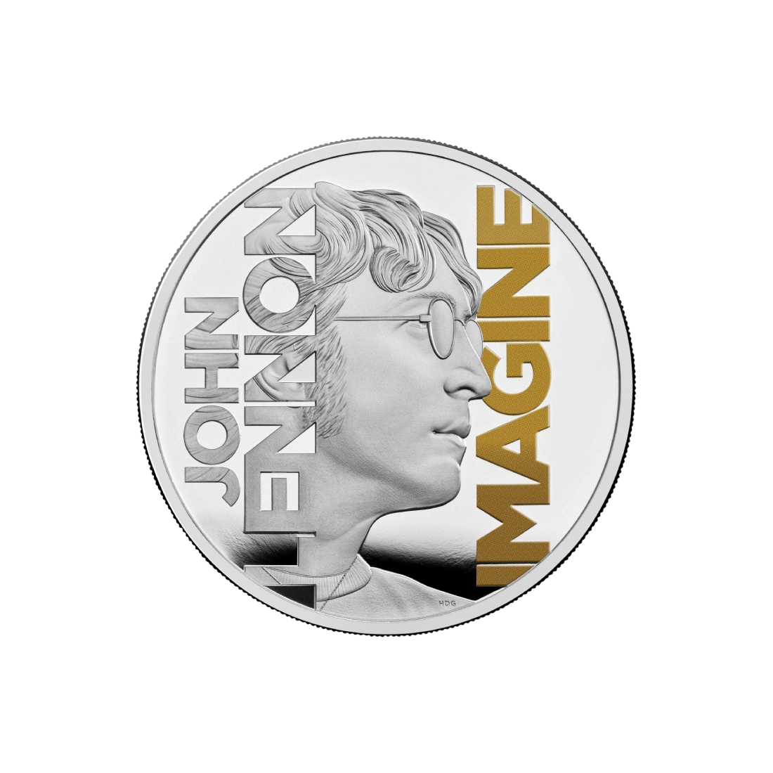 Awers monety przedstawia portret króla Karola III autorstwa Martina Jenningsa, otoczony inskrypcją „CHARLES III ∙ D ∙ G ∙ REX ∙ F ∙ D”, nominałem oraz rokiem emisji. Rewers, zaprojektowany przez Henry’ego Graya na podstawie słynnego zdjęcia Boba Gruena, ukazuje kolorowany wizerunek Johna Lennona z napisami „John Lennon” i „Imagine”. Projekt nawiązuje do dziedzictwa artysty oraz jego przesłania pokoju.