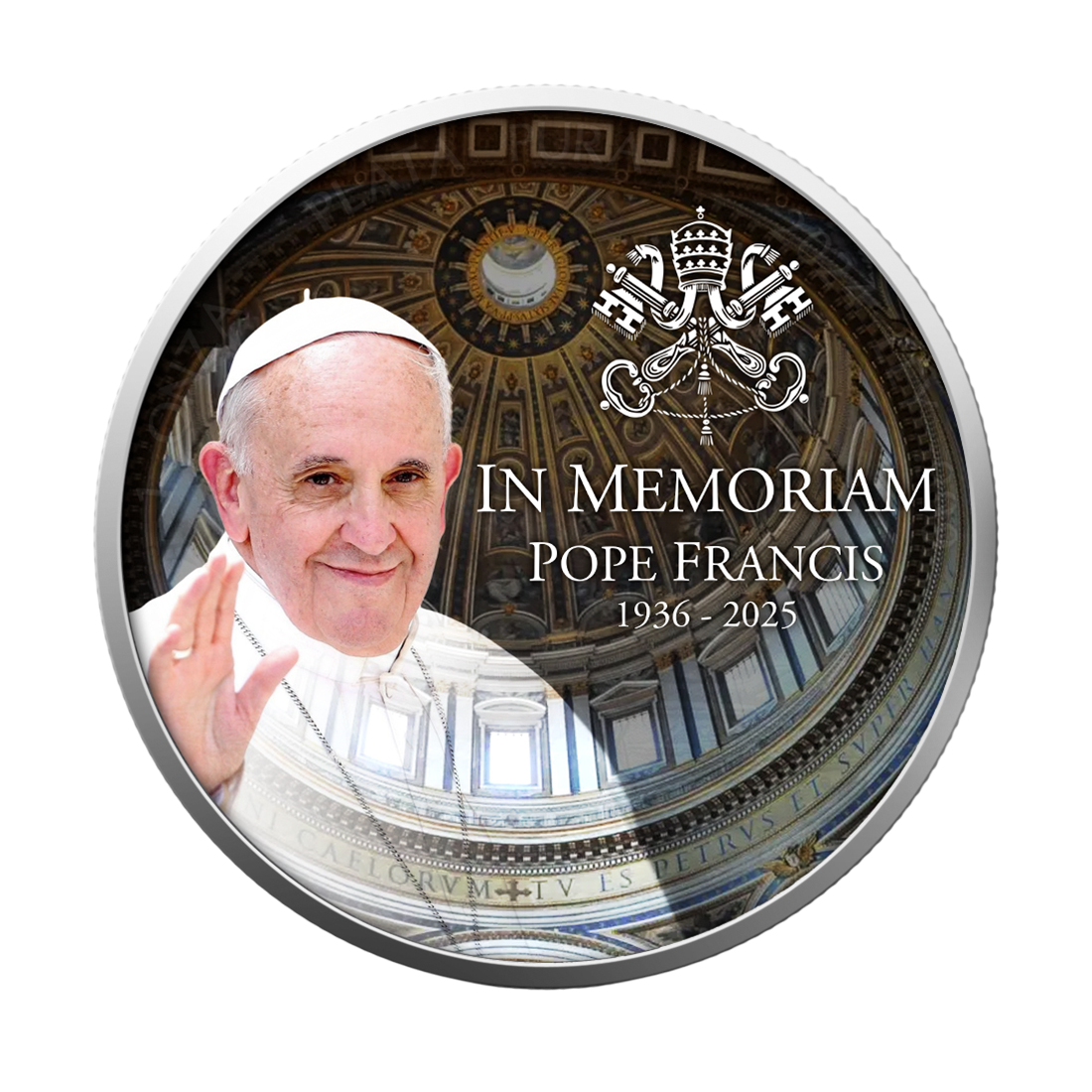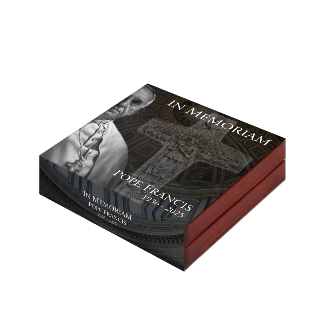 Moneta upamiętnia papieża Franciszka – duchowego przywódcę, który od początku swojego pontyfikatu inspiruje miliony ludzi na całym świecie swoimi wartościami takimi jak pokora, troska o bliźniego oraz dbałość o sprawiedliwość społeczną. Projekt monety został stworzony z dbałością o każdy detal, aby oddać hołd jego osobowości i przesłaniu. Na awersie widnieje realistyczny wizerunek papieża, który emanuje spokojem i mądrością, co czyni ten numizmat nie tylko cennym przedmiotem inwestycyjnym, ale również prawdziwym dziełem sztuki numizmatycznej.