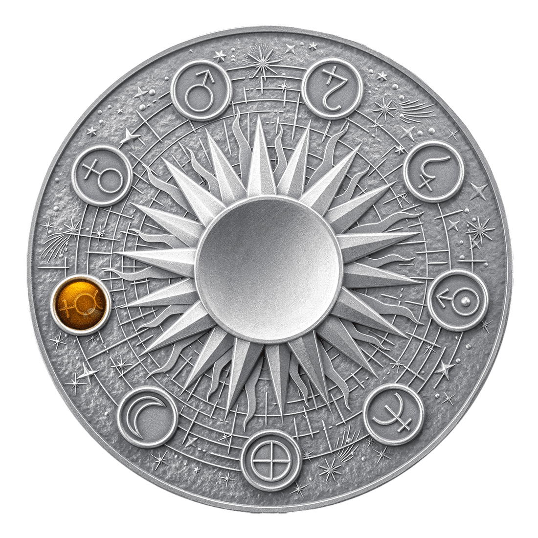 Srebrna moneta „Układ Słoneczny: Merkury 2024” to unikalne połączenie artystycznej wizji i inwestycyjnego potencjału. Wykonana z dwóch uncji czystego srebra próby 0,999, prezentuje niezwykły projekt zainspirowany najmniejszą planetą krążącą wokół Słońca. Jej głównym elementem wizualnym jest naturalna kula z lepidolitu o średnicy 35 mm, osadzona w monecie niczym Merkury zawieszony w przestrzeni. Zestawienie antycznego wykończenia, wysokiego reliefu oraz nowoczesnych technik zdobniczych przyciąga wzrok zarówno kolekcjonerów, jak i świadomych inwestorów.