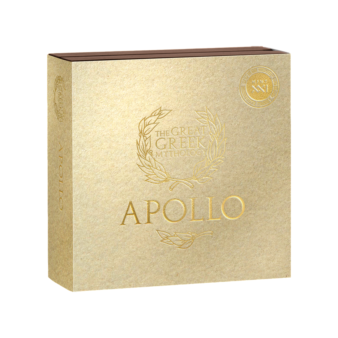 Rewers monety przedstawia Apolla w otoczeniu Muz – bogiń inspiracji artystycznej. Postać boga trzymającego złoconą lirę została wyrzeźbiona w wysokim reliefie, który oddaje detale twarzy, ciała i szat w sposób niemal rzeźbiarski. Całość uzupełnia selektywne złocenie 24-karatowym złotem, co nadaje projektowi głębi i ekskluzywnego charakteru. Srebrna moneta Mitologia Grecka: Apollo 2025 2 uncje została wykończona w stylu antycznym, który dodatkowo podkreśla jej historyczną i kulturową wartość.
