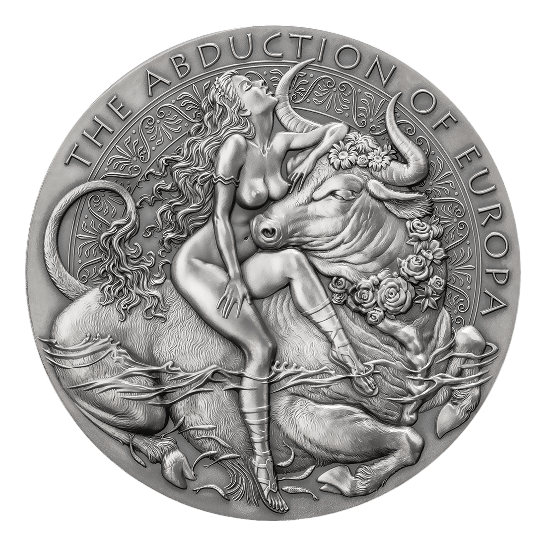 Srebrna moneta „Porwanie Europy” to artystyczna eksploracja mitycznej historii, w której Zeus przemienia się w byka, by porwać Europę. Emitowana w 2023 roku przez Cameroun, należy do serii Celestial Beauty, dedykowanej kobiecej elegancji i boskiej harmonii. Motyw Europy i Zeusa w formie mitycznego byka oddaje piękno i siłę mitu, a bogato zdobiona kompozycja przyciąga wzrok i budzi emocje.
