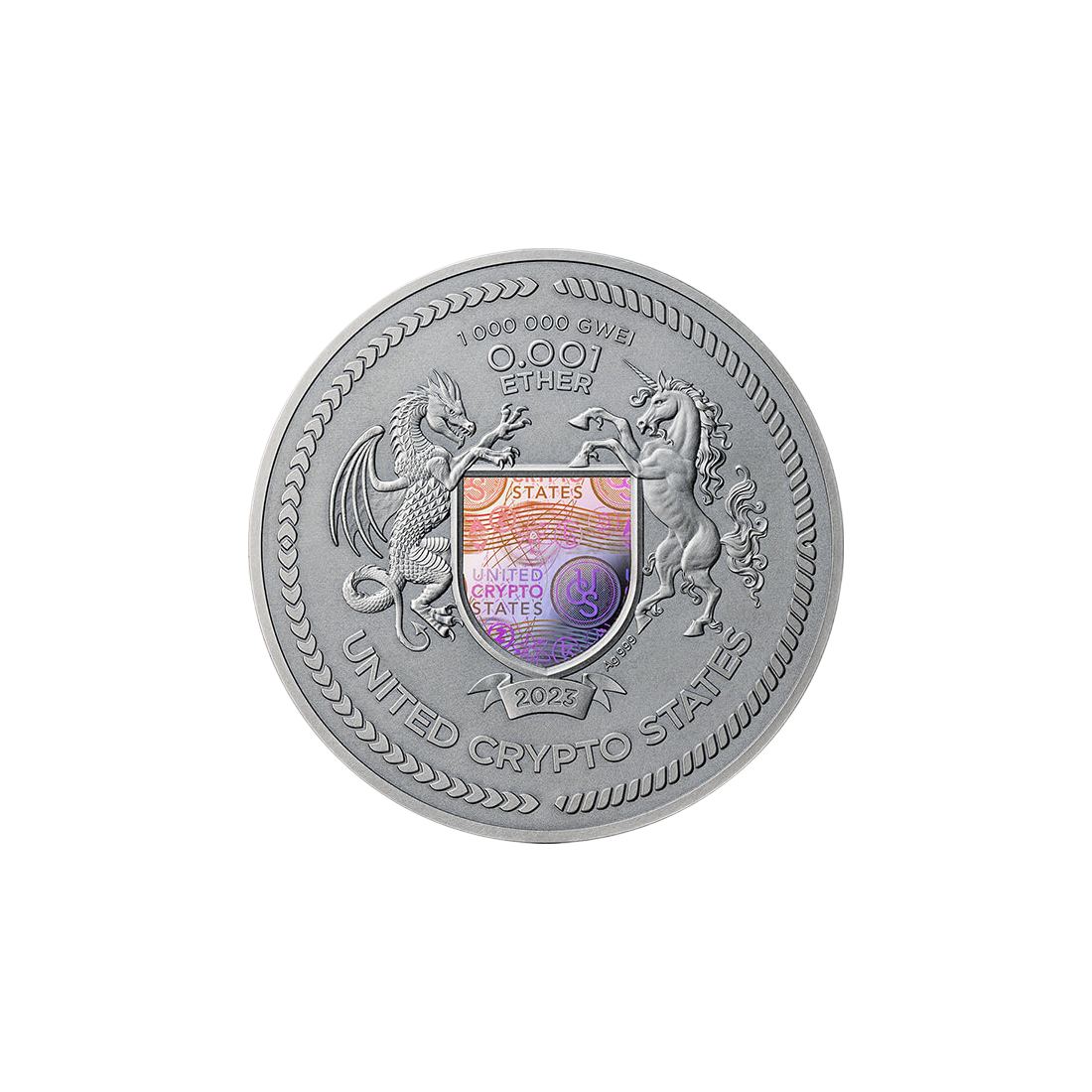 Binary Puma to wyjątkowa moneta o wadze 2 uncji wykuta w najwyższej jakości srebrze próby .999, która łączy świat fizyczny z cyfrowym. Nominał wynosi 0,001 ether, co podkreśla nowoczesne podejście do wartości numizmatycznej. Emitent – United Crypto States – wprowadził tę monetę w 2023 roku jako pionierski element w kolekcji, który symbolizuje dualizm między tradycją numizmatyczną a technologią blockchain.
