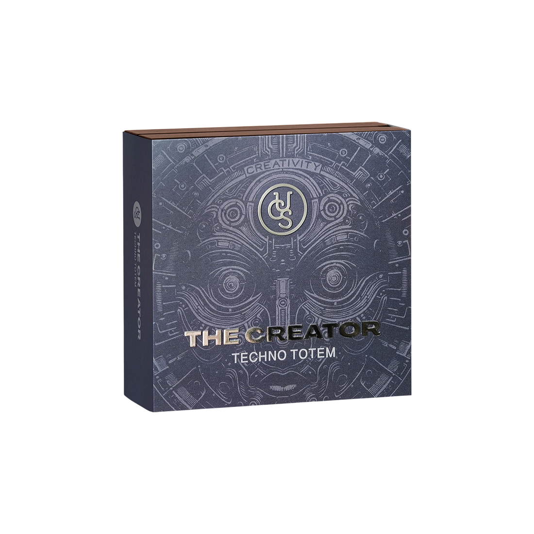 Moneta „The Creator” z serii Techno Totem to wyjątkowe połączenie piękna numizmatyki i zaawansowanych technologii. Centralnym motywem jest portret ludzkiej twarzy, która symbolizuje twórców sztucznej inteligencji i innowacji cyfrowych. Kryształowy element wbity w monetę przyciąga wzrok i stanowi metaforę czystości idei. Dodatkowo zastosowanie cyfrowego druku, reliefu oraz hologramu to nie tylko efekt wizualny, ale również zabezpieczenie autentyczności.