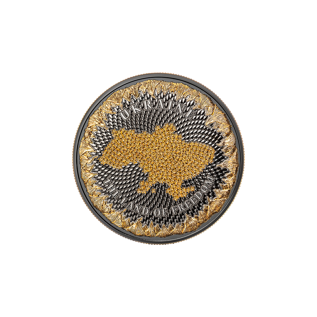 Motywem przewodnim jest słonecznik – narodowy symbol Ukrainy, który na awersie otacza kontury kraju, podkreślając jego integralność terytorialną oraz dążenie do pokoju i dobrobytu. Zastosowanie ruthenium oraz złocenia nadaje projektowi głębię i elegancję, a holograficzne zabezpieczenie na rewersie chroni wartość kryptowalutową tego wyjątkowego egzemplarza.