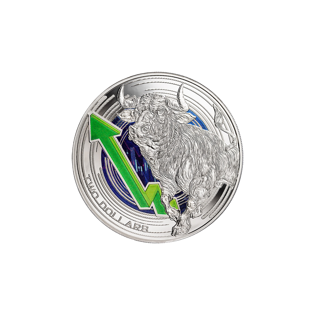 Podstawą inwestycyjnej wartości monety jest najwyższej próby kruszec. Wykonana ze srebra o czystości 999, o wadze jednej uncji (31,1 g), moneta Rynek byka i niedźwiedzia jest materialnym dowodem posiadania szlachetnego metalu. Srebro jako towar o podwójnym zastosowaniu (inwestycyjnym i przemysłowym), posiada solidne fundamenty cenowe, co minimalizuje ryzyko wahań wartości. Kształt krążka o średnicy 50 mm w połączeniu z jakością menniczą Proof-like i ząbkowanym brzegiem, podkreśla jej ekskluzywny charakter. W komplecie otrzymują Państwo eleganckie pudełko oraz Certyfikat Autentyczności (CoA) wystawiony przez mennicę MINT XXI, co potwierdza jej pochodzenie i gwarantuje bezpieczeństwo transakcji. Wysoka jakość wykonania i kompletne opakowanie stanowią niezbędny element dla utrzymania i potencjalnego wzrostu wartości monety na rynku wtórnym.