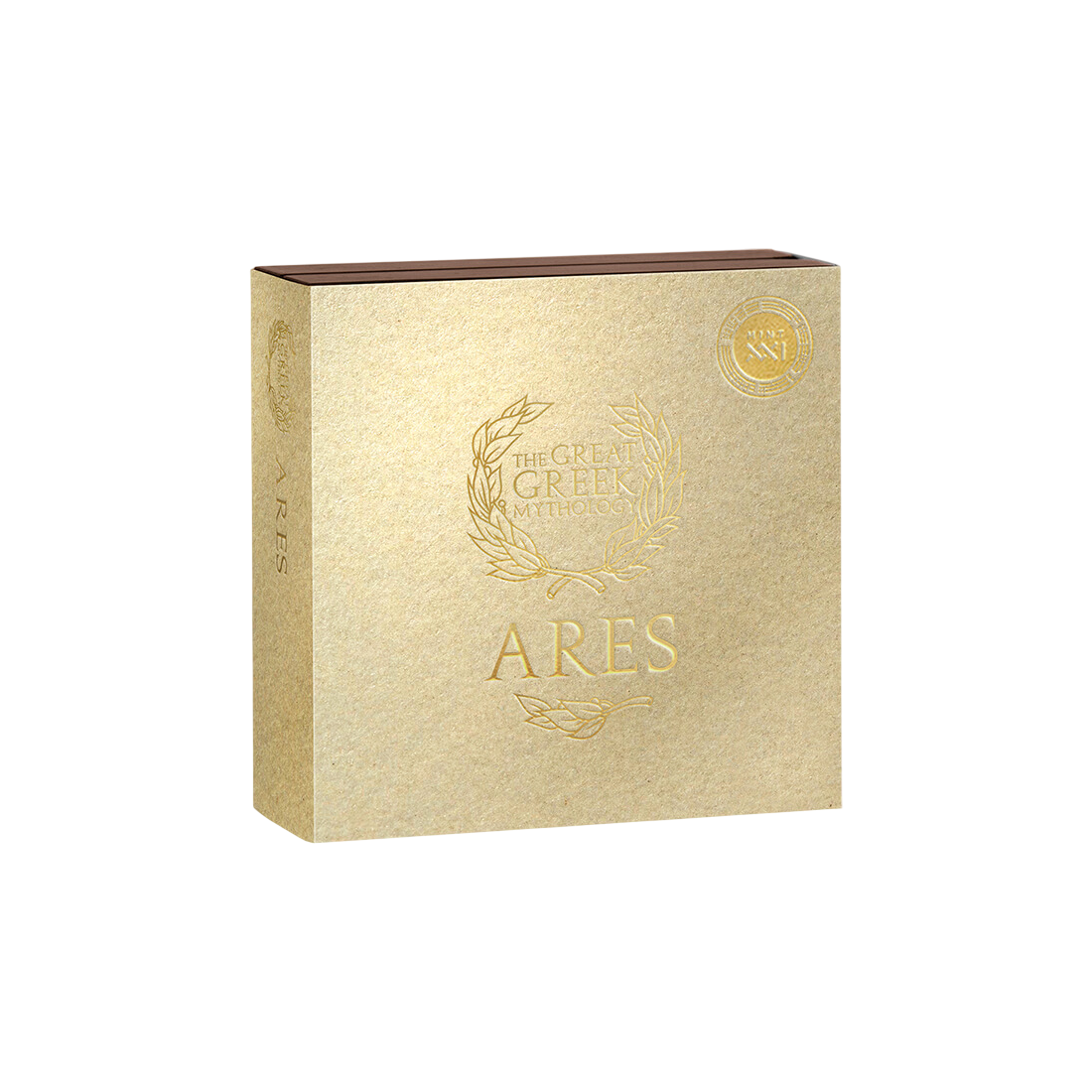 Uchwyć ducha wojny i heroicznej siły w monecie z 2024 roku, która majestatycznie prezentuje greckiego boga Aresa. Moneta ta, wybita przez cenioną mennicę MINT XXI, stanowi arcydzieło numizmatyczne, będące połączeniem czystego kruszcu i mistrzowskiego kunsztu. Szczególną uwagę przykuwa antyczne wykończenie, które nadaje srebru patyny czasu, oraz niezwykle wysoki relief. Ta zaawansowana technika rzeźbiarska wydobywa trójwymiarowość wizerunku, podkreślając każdy detal groźnej zbroi i nieugiętego wyrazu twarzy boga, symbolizując jego gotowość do walki oraz honor. Selektywne złocenie kasków oraz wybranych elementów uzbrojenia dodaje kompozycji elementu królewskiego majestatu i podkreśla jej luksusowy charakter. Ares, bóg chaosu i honoru bitewnego, staje się metaforą dla niezłomności i siły inwestycyjnej, jaką oferuje metal szlachetny, uosabiając potencjał, który drzemie w unikalnych numizmatach.