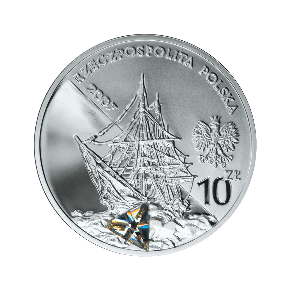 Moneta snuje sugestywną opowieść o polarnej ekspedycji - jej projekt łączy artystyczną wrażliwość z nastrojem przygody, tworząc emblemat badań i odkryć w jednej kompozycji. Na rewersie widnieją popiersia dwóch badaczy - Henryk Arctowski oraz Antoni B. Dobrowolski - na tle kontynentu antarktycznego oraz fragmentu góry lodowej, co symbolizuje ich wkład w polską i światową naukę polarną. W dolnej części kompozycji zamieszczono globus z widocznym południowym biegunem, który wizualnie spaja tematykę wyprawy i globalnego znaczenia działalności naukowej. Awers ukazuje godło Rzeczypospolitej Polskiej otoczone nazwą państwa i wskazaniem wartości nominalnej, co nadaje emisji oficjalnego i reprezentacyjnego charakteru. Całość projektu została utrzymana w klarownej, czytelnej formie, dzięki której moneta zyskuje zarówno rangę pamiątki historycznej, jak i estetycznego obiektu kolekcjonerskiego.