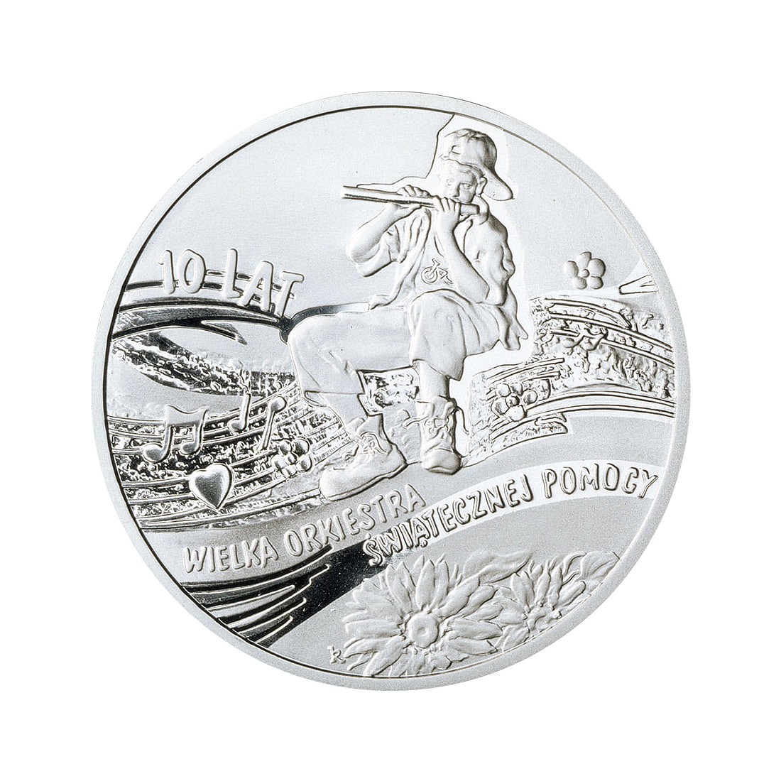 Celebracyjny numizmat wyemitowany przez Narodowy Bank Polski z okazji dziesięciolecia działalności fundacji Wielka Orkiestra Świątecznej Pomocy. Stworzony został z myślą o kolekcjonerach monet okolicznościowych oraz osobach, które pragną uczcić wyjątkowe wydarzenie o dużym znaczeniu społecznym i charytatywnym. Emisja monety podkreśla ogromny wpływ WOŚP na rozwój polskiej medycyny, szczególnie w zakresie opieki nad dziećmi, a także upamiętnia pierwszą dekadę działań, które na trwałe zmieniły krajobraz dobroczynności w Polsce.