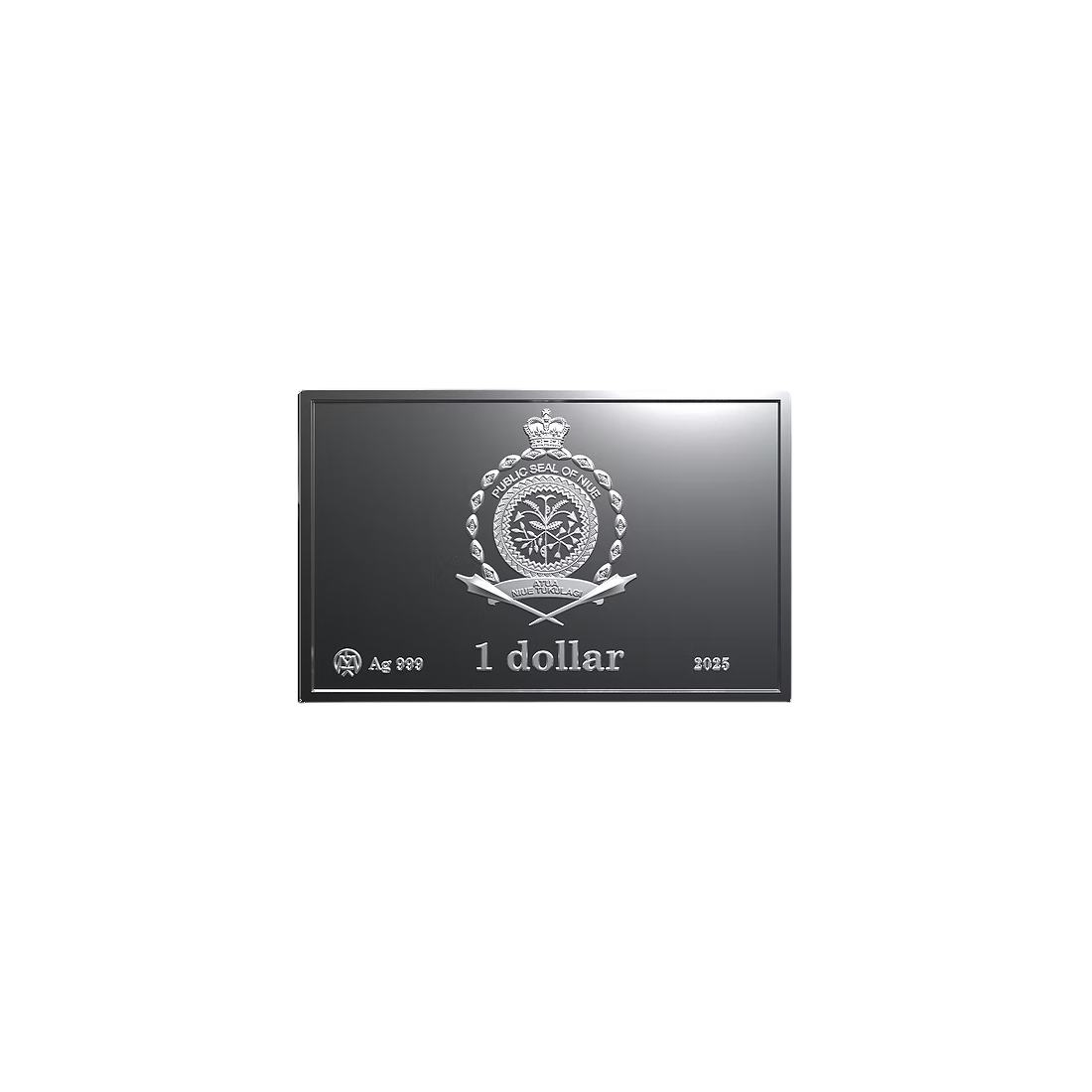 Ta wyjątkowa moneta została wybita ze srebra próby 999, co jest najwyższym standardem czystości kruszcu, cenionym w transakcjach inwestycyjnych na całym świecie. Jedna uncja czystego metalu (31.1 grama) stanowi solidną podstawę materialną, niezależną od wahań koniunkturalnych. Kształt, będący prostokątnym wycinkiem o wymiarach 47 mm x 30 mm, nadaje jej nowoczesny i oryginalny charakter, odróżniając od tradycyjnych monet bulionowych. Wykończenie typu Prooflike zapewnia doskonałą prezencję, uwydatniając każdy szczegół skomplikowanej sceny na rewersie. Awers monety prezentuje godło publiczne Niue oraz podstawowe informacje identyfikacyjne, kluczowe dla inwestora: nominał 1 dolar, czystość Ag 999 oraz rok emisji 2025. Jest to lokata kapitału w rzadkość, historię i najwyższą jakość wykonania.