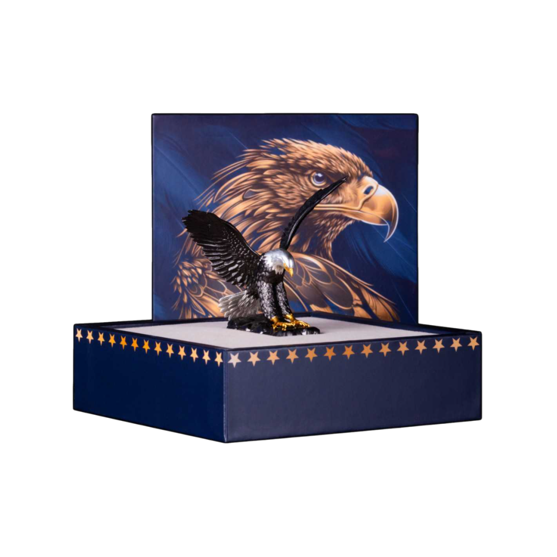 Trójwymiarowa rzeźba ptaka została wykonana z gorącym oddaniem, a każdy szczegół wyprofilowano z nieustającą precyzją, co czyni ją prawdziwym arcydziełem menniczym. Moneta jest wybita z czystego srebra o próbie 999, co gwarantuje jej wartość materialną i stabilność jako aktywa inwestycyjnego. Wykończenie "Black and Silver" otula figurę orła, a wyselekcjonowane złocenie dodaje jej delikatnego blasku i prestiżu. Połączenie szlachetnego metalu z innowacyjną techniką 3D i selektywnym uszlachetnieniem złotem sprawia, że jest to pozycja obowiązkowa dla poważnych kolekcjonerów i inwestorów poszukujących rzadkich aktywów, które mogą znacząco zyskać na wartości. Wyższa waga monety (3 uncje) naturalnie zwiększa jej wewnętrzną wartość opartą na cenie srebra spot.
