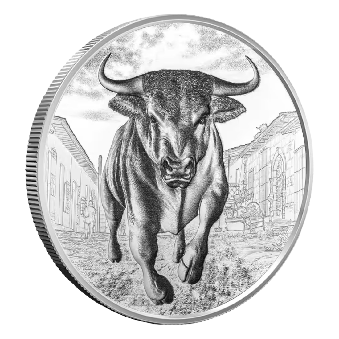 Rewers monety "Gniew" przedstawia byka w akcie szaleńczego ataku. Projekt charakteryzuje się niezwykłą głębią i dbałością o detale, które wydają się niemal namacalne. Można niemal poczuć drżenie mięśni byka i ogień w jego oczach. Dzięki zastosowaniu innowacyjnej technologii, byk na rewersie zdaje się podążać za obserwatorem, niezależnie od kąta patrzenia, co czyni design magnetyzującym. Jakość mennicza Proof (Lustrzany Stempel) dodatkowo podkreśla każdy zarys i teksturę krótkiej sierści zwierzęcia, zapewniając monetom najwyższy standard wykonania, który jest kluczowy dla inwestorów ceniących estetykę i perfekcję.