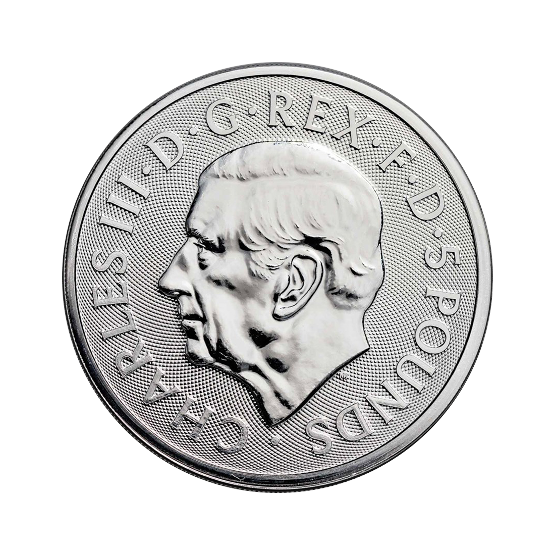 Awers przedstawia wizerunek Króla Wielkiej Brytanii Karola III autorstwa Martina Jenningsa oraz nominał monety.