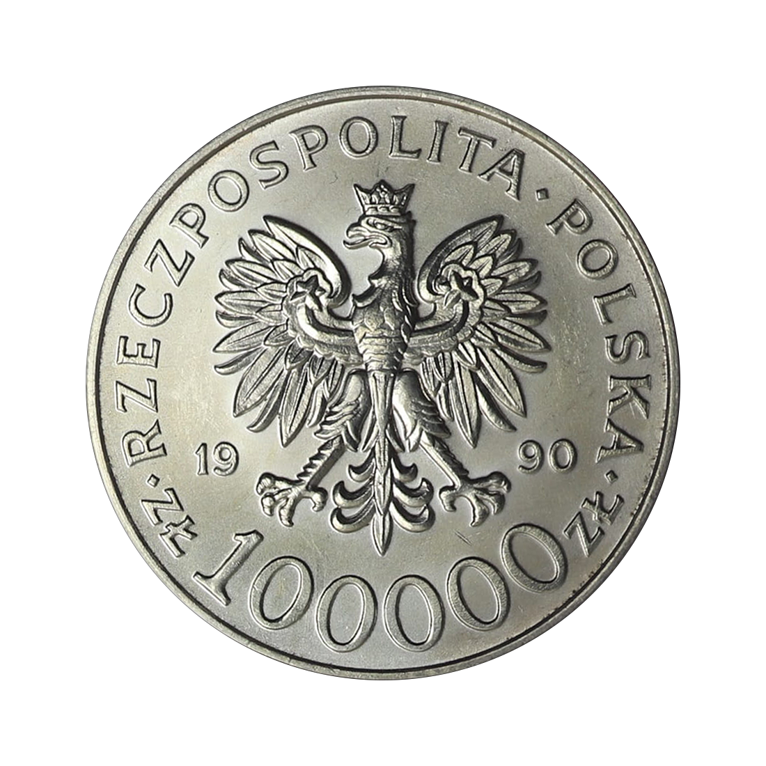 Srebrna moneta 100 000 złotych Solidarność 1990 - wysyłka 24 h!