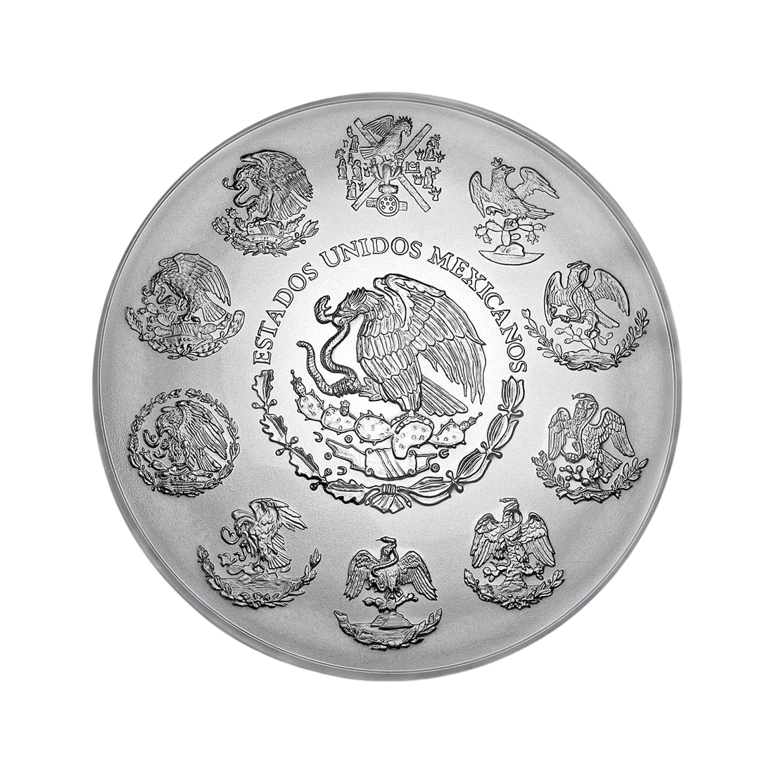 Projekt Srebrnej monety Libertad jest uznawany za jeden z najpiękniejszych w świecie numizmatyki. Na rewersie dominuje majestatyczny posąg Wiktorii, symbolizujący triumf meksykańskiej niepodległości, który jest tłem dla dwóch kultowych wulkanów: Popocatépetl i Iztaccíhuatl. Te góry opowiadają romantyczną i tragiczną historię miłości podobną do „Romea i Julii”, co nadaje monecie głębi kulturowej i historycznej. Rewers zawiera również kluczowe informacje inwestycyjne: wagę (1 kg), próbę (999) oraz datę bicia. Awers zdobi aktualny godło Meksyku – orzeł siedzący na kaktusie, otoczony symbolami reprezentującymi dziesięć meksykańskich prowincji, co podkreśla narodowy charakter monety. To połączenie historycznej symboliki, artystycznego wykonania i imponującej wagi sprawia, że Libertad jest nie tylko produktem inwestycyjnym o wysokim potencjale, ale także dziełem sztuki, które z biegiem lat zyskuje na atrakcyjności. Wybór tej monety to wybór dziedzictwa i rzemiosła.