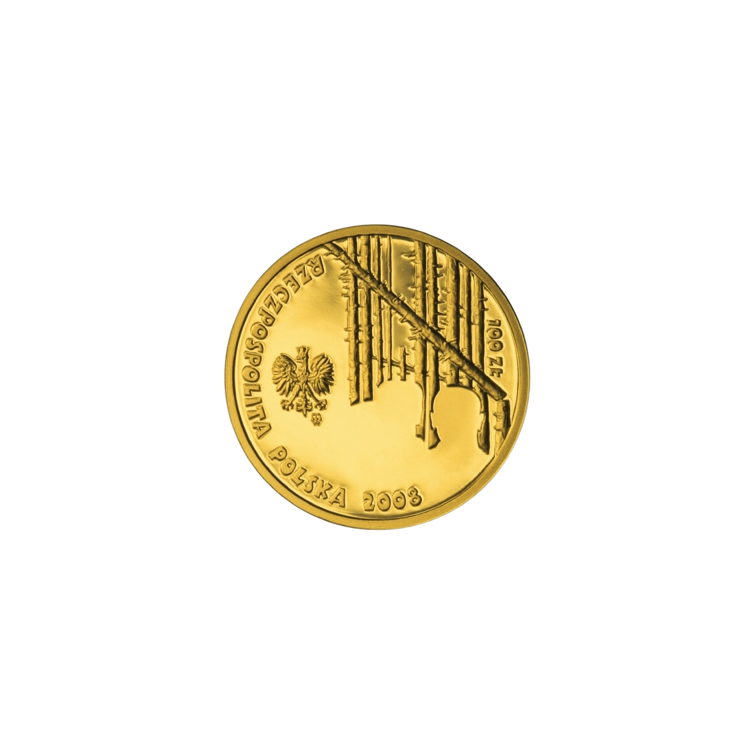 Na awersie znajduje się orzeł Rzeczypospolitej Polskiej, a po prawej sylwetki osób na tle pni drzew – symbol przetrwania. Pionowa inskrypcja „100 ZŁ”, rok emisji i oznaczenie mennicy pod lewą łapą orła to elementy nadające autentyczności i klasy.