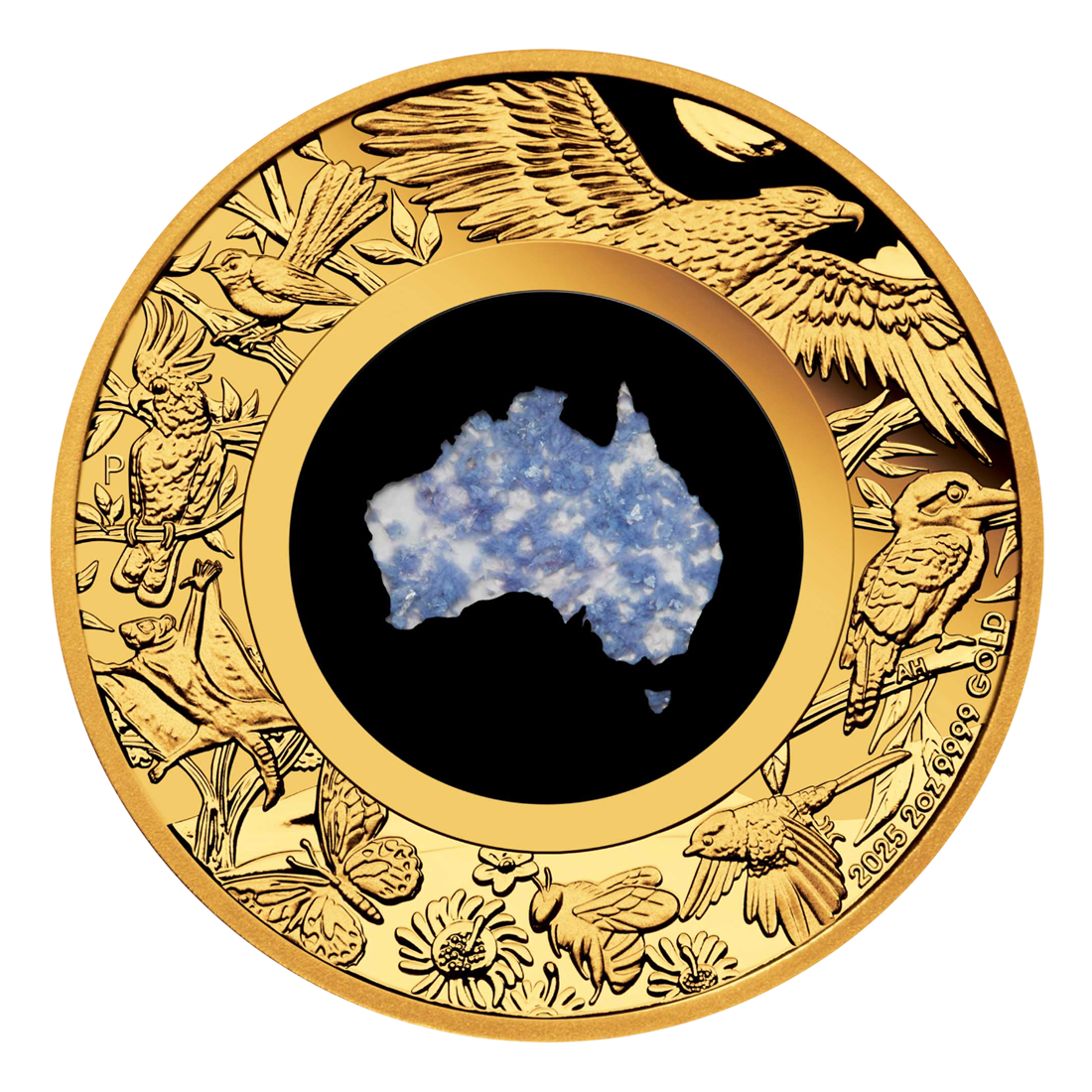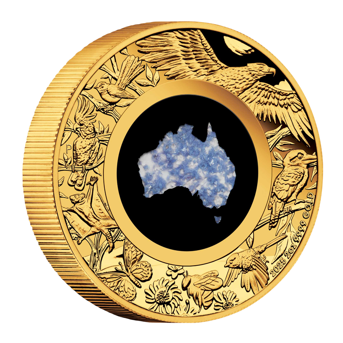 Złota moneta Australia z niebieskim lepidolitem 2025 2 uncje - wysyłka 24 h!