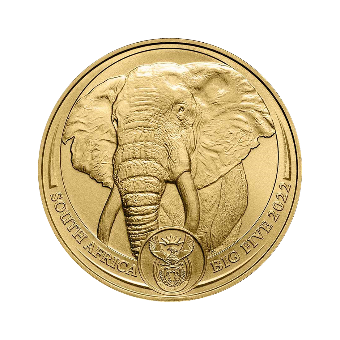 Nowa seria złotych monet bulionowych serii Big 5 jest pierwszą złotą monetą z RPA od momentu wydania Krugerranda. Seria w 2022 roku rozpoczyna się od portretu słonia. Słoń afrykański jest symbolem siły i jedności rodziny. To także największe żyjące zwierzę lądowe, które równocześnie jest jednym z najbardziej inteligentnych gatunków na Ziemi.