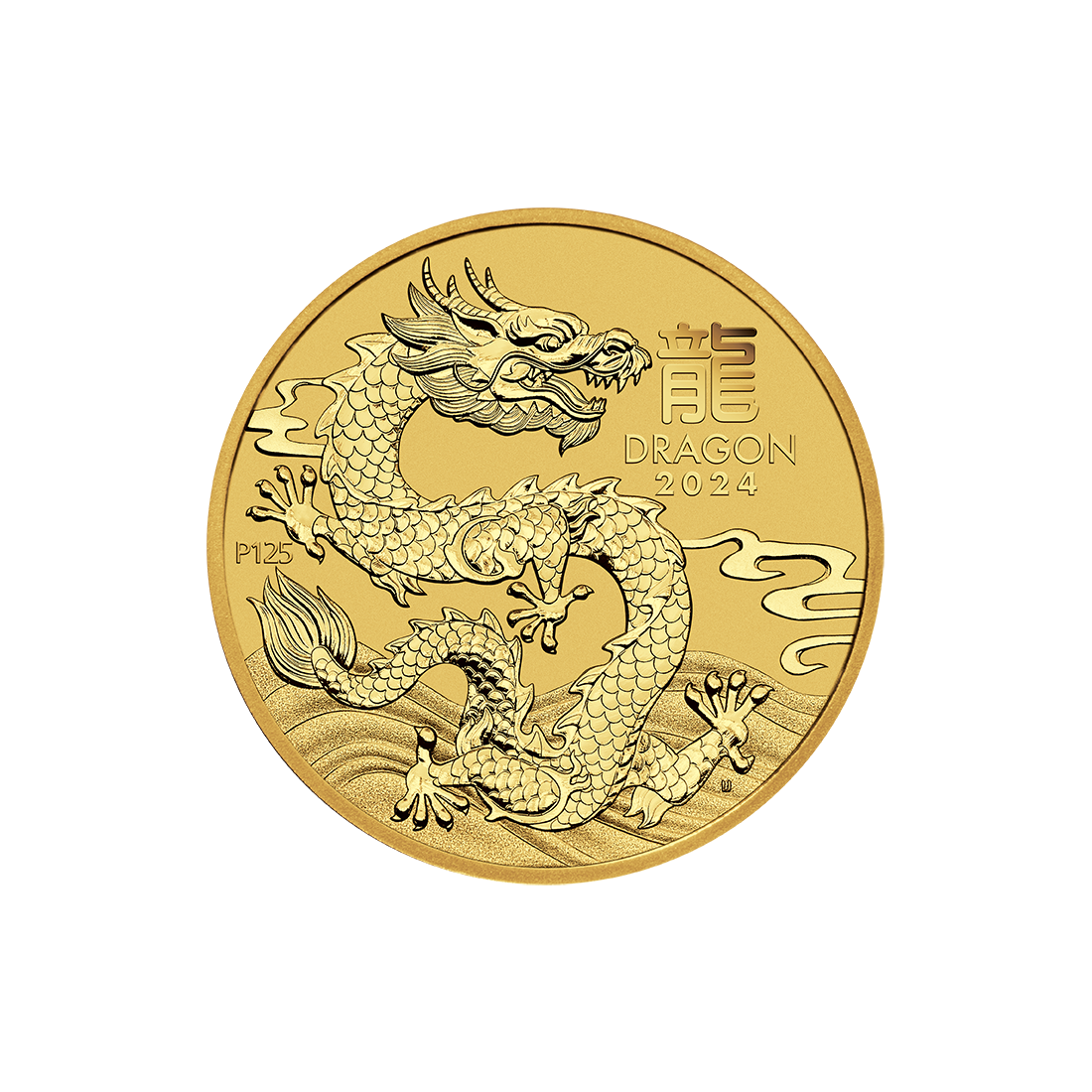 Na rewersie monety znajduje się starannie wygrawerowany chiński smok. Elementy, które zdobią ten obraz, to umieszczone w tle stylizowane mgły i fale. Widnieje tu też chiński znak smoka i napis DRAGON 2024. Skrót P125 mennicy oznacza 125. rocznicę powstania mennicy The Perth Mint.