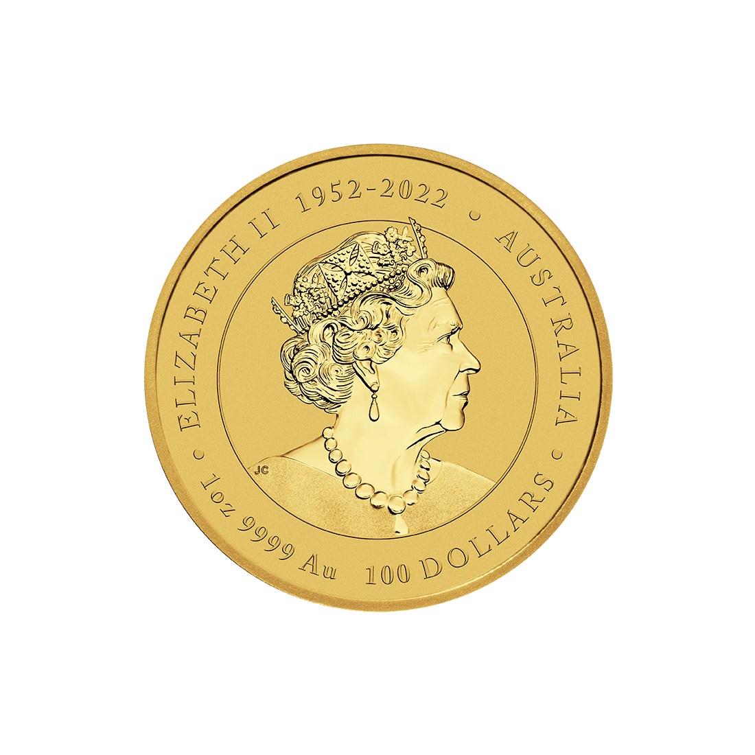 Awers zaprojektowany został przez Ian’a Rank’a – Broadley’a i ukazuje portret Jej Królewskiej Mości Królowej Elżbiety II, uzupełniony okresem jej panowania 1952-2022, a także wagą, próbą oraz nominałem.