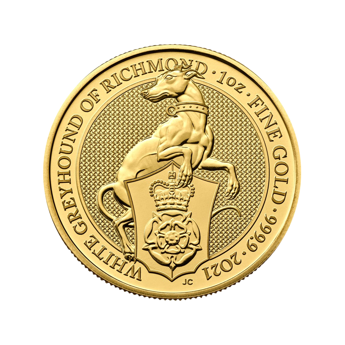 Opis złota moneta Bestie Królowej: Biały Chart z Richmond 1 uncja