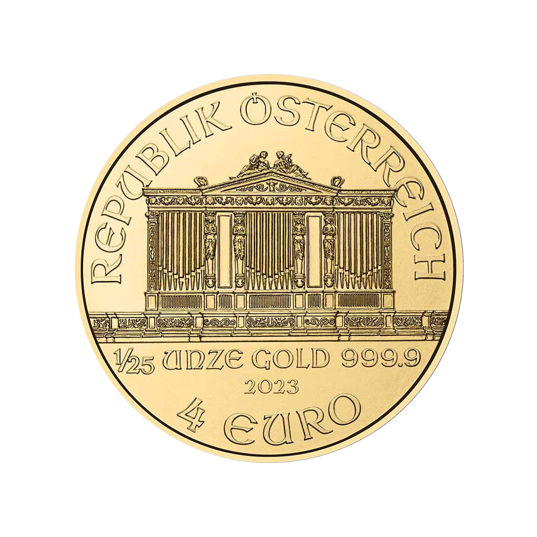 Wiedeńscy Filharmonicy to jedna z najpopularniejszych monet bulionowych na świecie. Złota moneta wykonana jest z najwyższej próby materiału, a jej waga to 1/25 uncji czyli ok 1,24 grama.