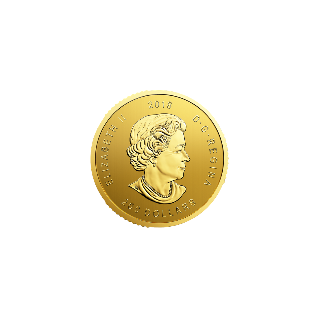 Awers monety zdobi portret Królowej Elżbiety II autorstwa Susanny Blunt, otoczony inskrypcjami: „ELIZABETH II”, „D.G. REGINA”, „2018” oraz wartością nominalną „200 DOLLARS”.