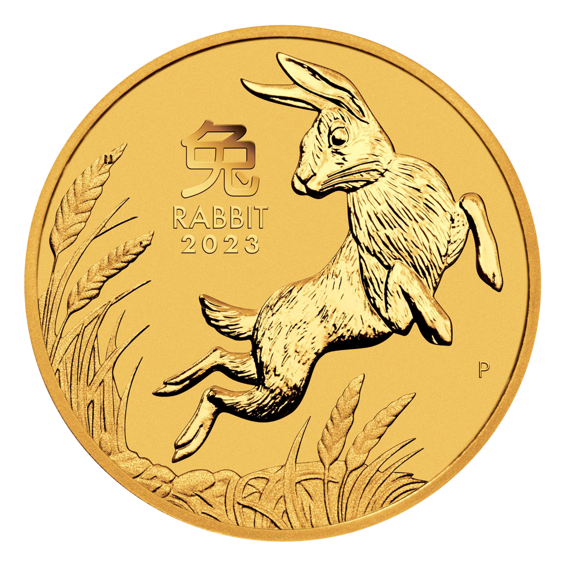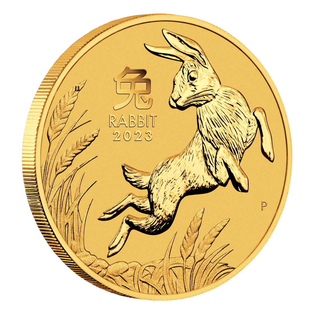 Rewers monety, zaprojektowany przez Ing Ing Jong, stanowi prawdziwe dzieło sztuki. Centralnym motywem jest wizerunek zwinnego królika, uchwyconego w skoku wśród traw. Królik w chińskim kalendarzu księżycowym jest czwartym z dwunastu zwierząt i symbolizuje szczęście, długowieczność, a także kreatywność, czujność i empatię. Osoby urodzone pod tym znakiem zodiaku uważane są za spokojne, dyplomatyczne i artystycznie uzdolnione. Obok wizerunku królika znajduje się chiński ideogram oznaczający "królika", a także rok emisji monety, „RABBIT 2023”, oraz charakterystyczny znak mennicy w postaci litery "P" (The Perth Mint), która stanowi dodatkowe zabezpieczenie. To połączenie symboliki z precyzją wykonania sprawia, że moneta ma wymiar zarówno inwestycyjny, jak i artystyczny, co przyciąga uwagę kolekcjonerów na całym świecie.