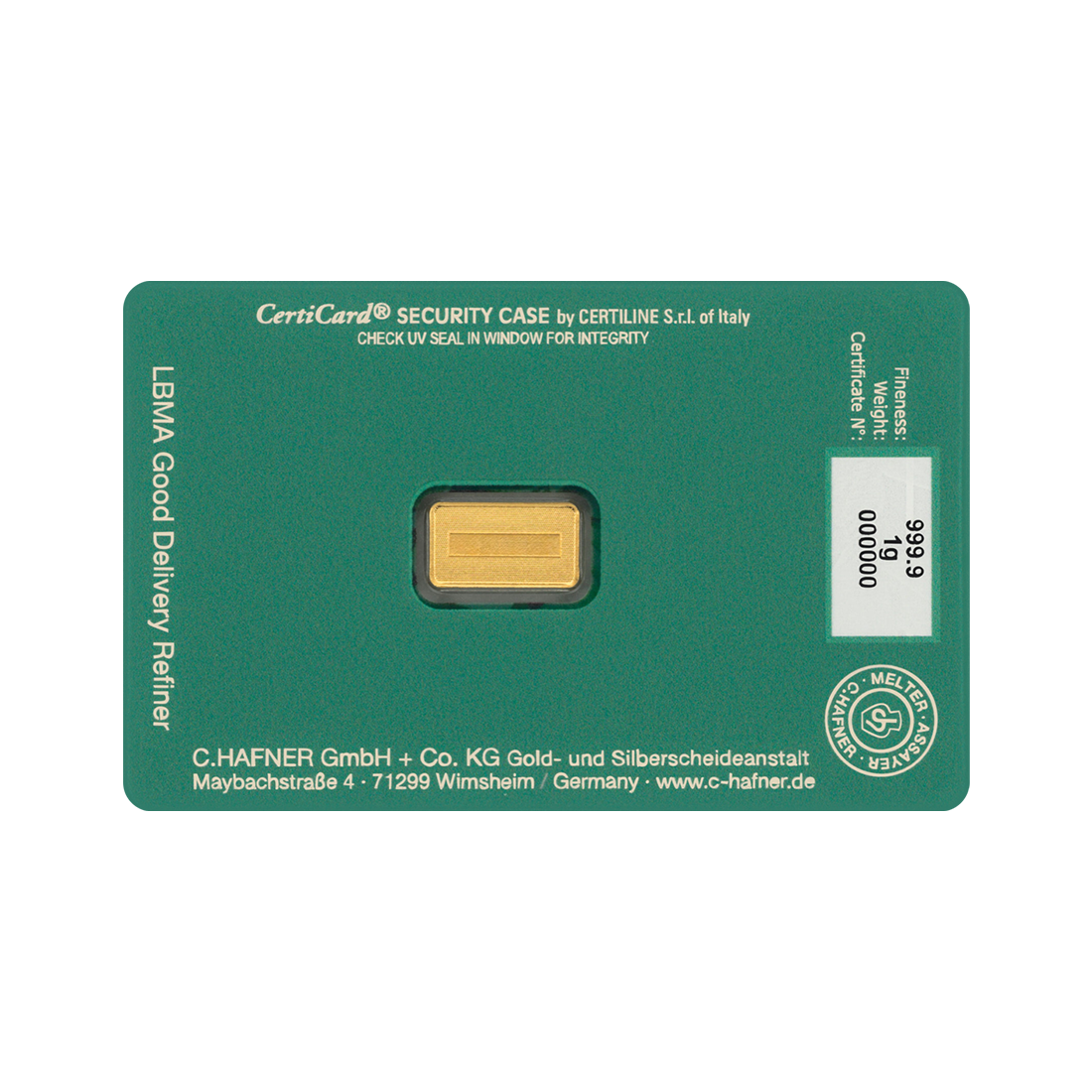 Założona w 1850 roku niemiecka firma C.Hafner jest dziś jednym z wiodących europejskich dostawców produktów i usług w dziedzinie technologii metali szlachetnych. W ofercie posiada szeroką gamę złotych sztabek o różnej wadze, które charakteryzują się doskonałym wręcz wykonaniem. Produkty certyfikowane są akredytacją Good Delivery, którą wydaje szanowana na całym świecie instytucja LBMA. Świadczy to o niezwykle wysokich standardach, które trzyma mennica i jej produkty.