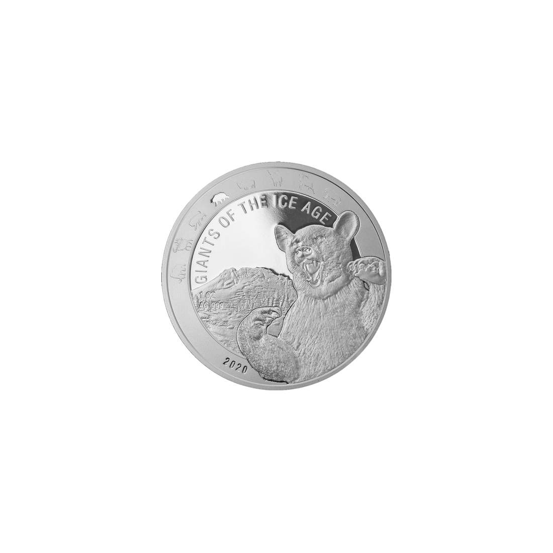 Srebrna moneta Giganci epoki lodowcowej: Niedźwiedź Jaskiniowy 1 uncja – wysyłka 24 h!