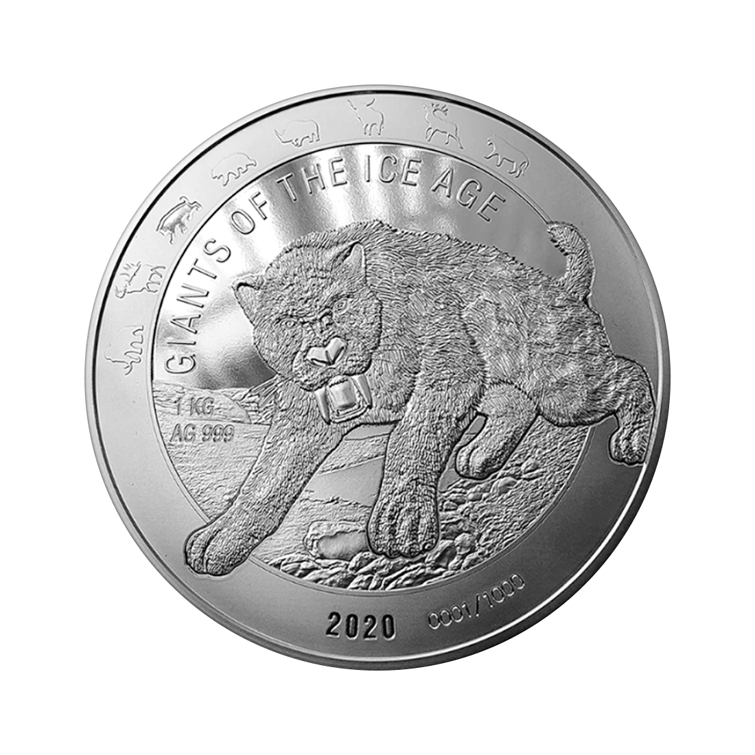 Srebrna moneta Giganci epoki lodowcowej: Tygrys Szablozębny 1 uncja – wysyłka 24 h!