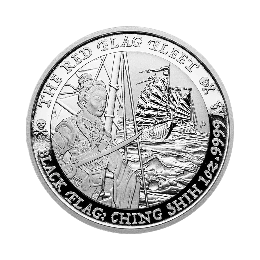 Tematem przewodnim emisji z 2021 roku jest potężna Flota Czerwonej Flagi oraz jej legendarna przywódczyni Ching Shih. Ta chińska piratka stworzyła jedną z największych armii morskich w historii, kontrolując setki okrętów i dziesiątki tysięcy ludzi. Jej wpływy na Morzu Południowochińskim były tak duże, że stanowiły realne wyzwanie dla ówczesnych mocarstw. Rewers monety w sposób niezwykle szczegółowy oddaje ten historyczny klimat, przedstawiając Ching Shih na pokładzie statku w otoczeniu swojej floty. Stylistyka serii Black Flag wyróżnia się dbałością o detale oraz dynamicznym ujęciem morskich fal, co przyciąga uwagę inwestorów szukających produktów o wysokim standardzie wykonania.