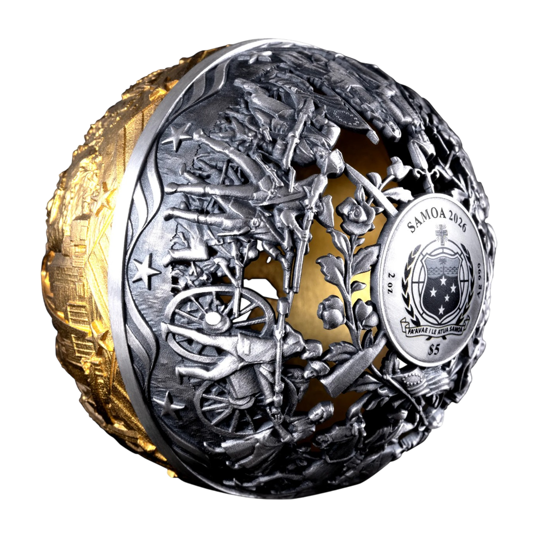 Srebrna moneta sferyczna Rewolucja i Wolność to unikatowe arcydzieło współczesnej numizmatyki, które łączy w sobie głęboką symbolikę historyczną z zaawansowaną technologią menniczą. Wybita z 2 uncji czystego srebra próby 999, stanowi doskonały wybór dla osób poszukujących nieszablonowych aktywów o wysokim potencjale wzrostu wartości. Ten trójwymiarowy numizmat w formie sferycznej kuli celebruje 250-lecie niepodległości Stanów Zjednoczonych, prezentując dualizm walki o suwerenność oraz owoców wolności.
