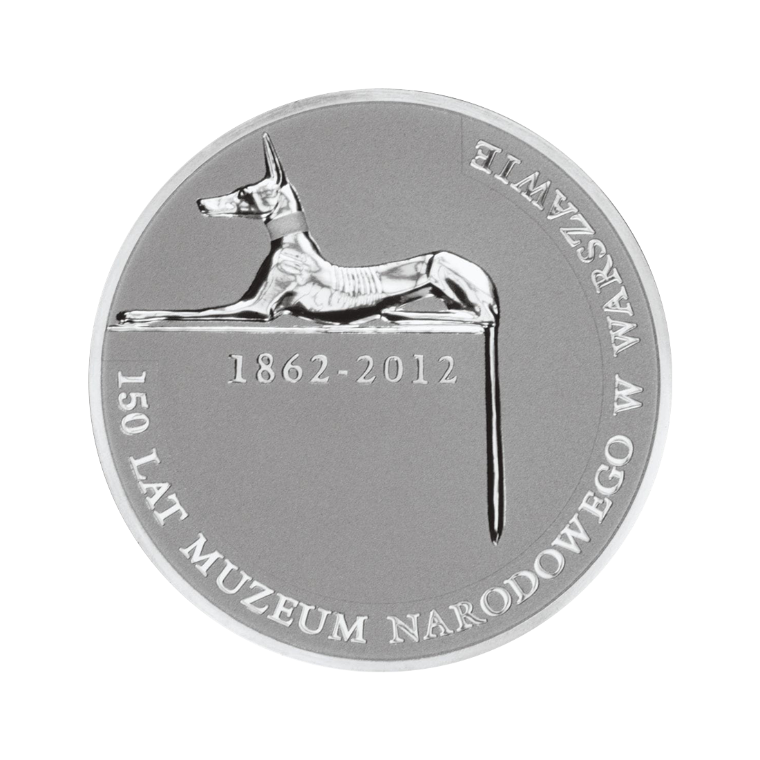 Ogólny wygląd monety jest kompozycją symboliczną, łączącą elementy nawiązujące do historii zbiorów sztuki i ich znaczenia dla kultury, z czytelnymi napisami jubileuszowymi rozmieszczonymi w przejrzysty sposób na obydwu stronach projektów. Rewers monety przedstawia wizerunek egipskiego boga Anubisa w postaci psa, umieszczony u góry po lewej stronie; poniżej widoczny jest zakres dat 1862 – 2012, które odnoszą się do okresu działalności muzeum, a w otoku, na wyodrębnionej płaszczyźnie, znajduje się napis upamiętniający 150 lat Muzeum Narodowego w Warszawie, co tworzy wyraźną i zrównoważoną kompozycję jubileuszową. Awers skupia się wokół godła Rzeczypospolitej Polskiej - orła w koronie, umieszczonego centralnie na tle napisu wskazującego kraj emitenta i rok emisji; w otoku wokół orła znajdują się odpowiednie napisy identyfikujące państwo i datę, a poniżej godła umieszczony jest mały znak mennicy, co podkreśla oficjalny charakter monety. Całość projektu cechuje czytelne zestawienie elementów figuralnych z tekstowymi, co ułatwia identyfikację tematu oraz nadaje monecie pamiątkowy i artystyczny charakter.