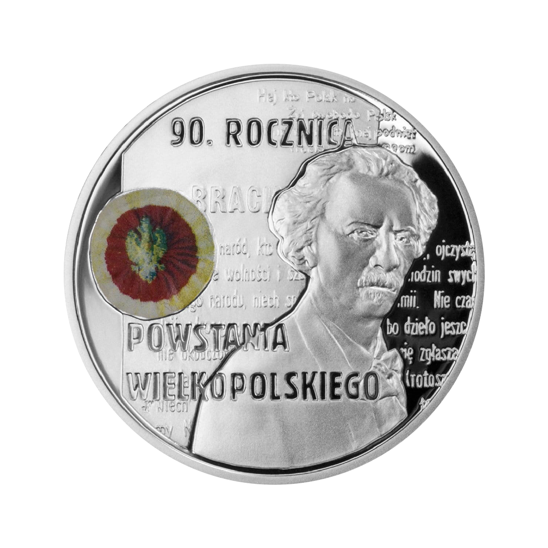 Moneta upamiętnia 90. rocznicę Powstania Wielkopolskiego, jednego z nielicznych zwycięskich polskich zrywów niepodległościowych z końca I wojny światowej, który doprowadził do przyłączenia regionu Wielkopolski do odrodzonego państwa polskiego. Ten egzemplarz kolekcjonerski został wydany z myślą o osobach zainteresowanych historią Polski i wydarzeniami z przełomu 1918 roku, oferując symboliczne nawiązania do ludzi i znaków kojarzonych z tym zrywem. Jako monetę pamiątkową, projektowano ją tak, by przywoływała zarówno obraz walki i jedności społecznej, jak i postać czołowych uczestników powstania, co sprawia, że jest interesującym elementem kolekcji historycznych monet polskich.