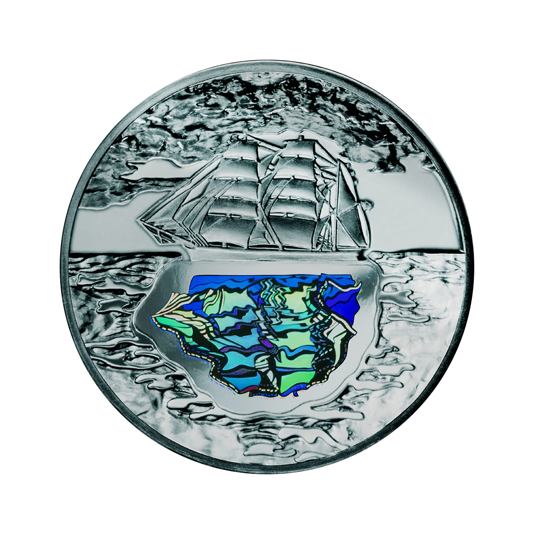 Numizmat został zaprojektowany z dbałością o szczegóły, podkreślając zarówno artystyczny, jak i historyczny wymiar pamiątki. Rewers przedstawia angielski statek Otago, którym Conrad odbywał swoje rejsy, symbolizując jego bliską więź z morzem. Największą uwagę w projekcie przyciąga umieszczony tam hologram, jako odbicie statku w wodzie, który zmienia kolory zależnie od kąta patrzenia. Nadaje to monecie wyjątkowej głębi i nowoczesnego charakteru. Na awersie znajduje się wizerunek Josepha Conrada Korzeniowskiego, a także jego podpis, który stał się rozpoznawalnym symbolem pisarza. Z lewej strony umieszczono nominał monety, a z prawej herb Rzeczypospolitej Polskiej. Całość wykończona została w technice lustrzanego stempla, co sprawia, że powierzchnia monety jest gładka i błyszcząca, co dodatkowo podkreśla finezję projektu.