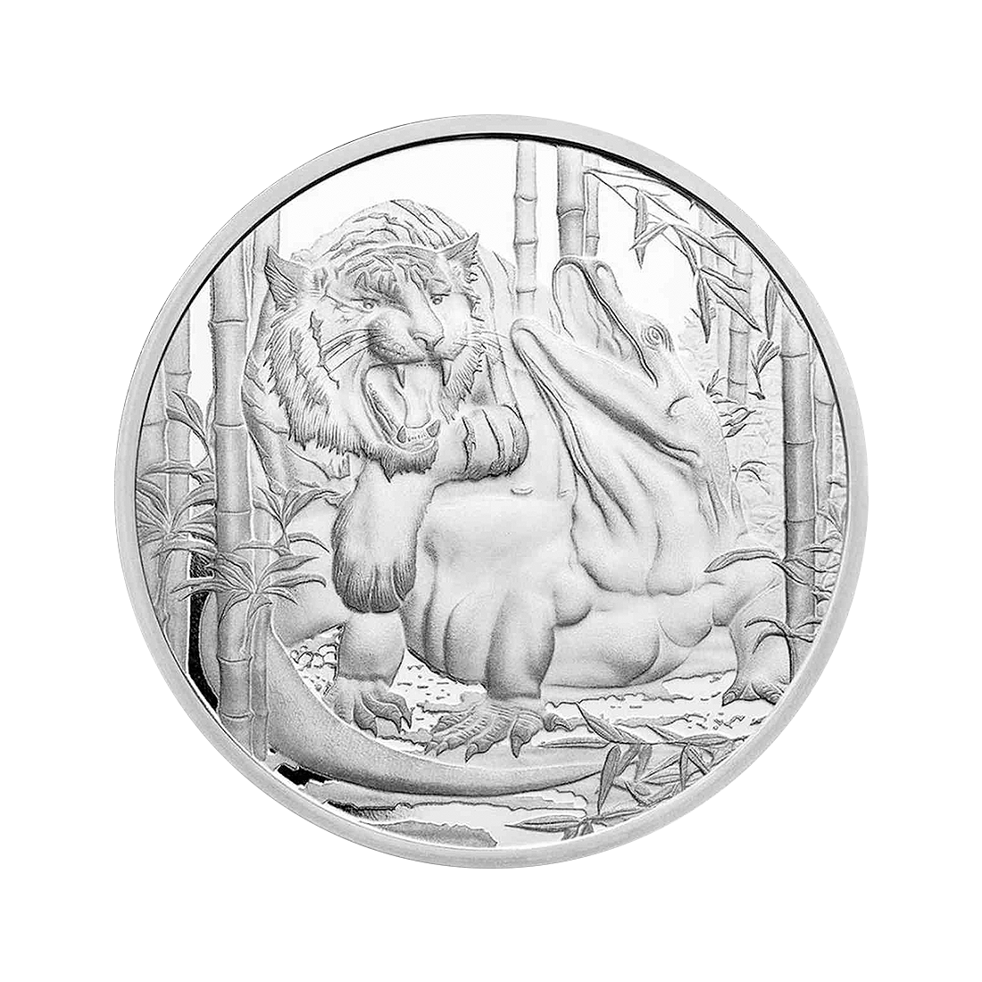 Srebrna moneta Apex Predators: Waran vs Tygrys 1 uncja - wysyłka 24 h!