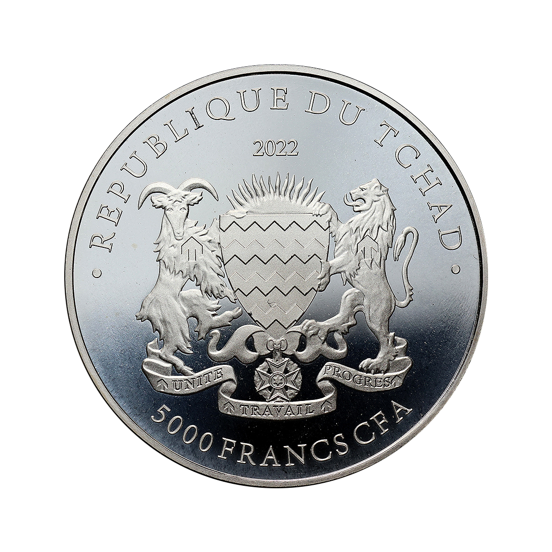Awers koncentruje się na herbie Czadu oraz podstawowych napisach identyfikacyjnych, takich jak informacja o roku emisji i nominał, w układzie typowym dla monet emitowanych jako oficjalny środek płatniczy danego kraju. Całość projektu łączy motyw cyfrowej waluty z tradycyjnym układem numizmatycznym, tworząc walor, który przemawia zarówno do miłośników nowoczesnych tematów, jak i do kolekcjonerów monet o oficjalnym charakterze.