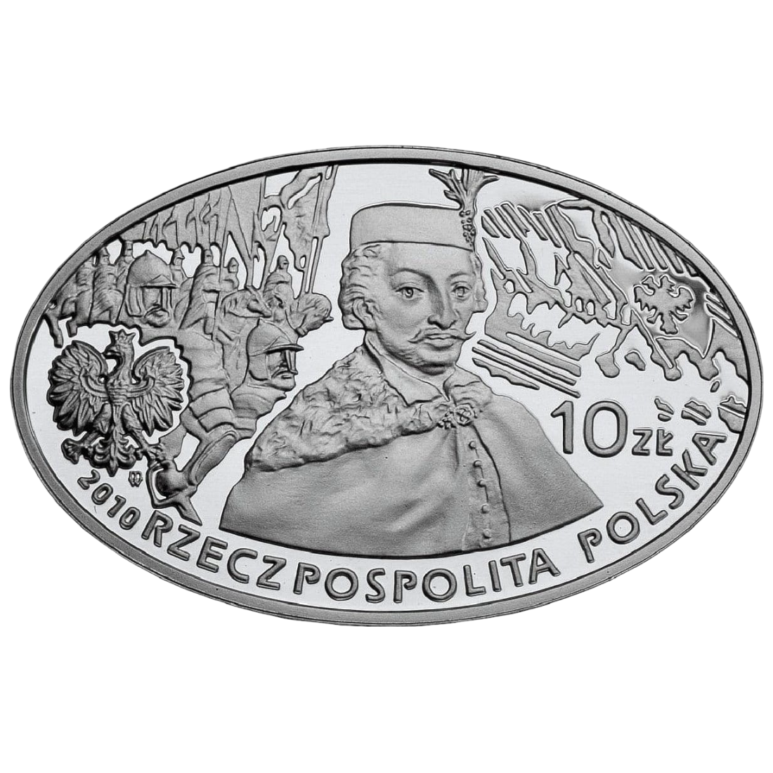 Rewers monety przedstawia dynamiczną scenę szarży husarii, która pod wodzą hetmana Stanisława Żółkiewskiego odniosła jedno z najbardziej spektakularnych zwycięstw w historii Rzeczypospolitej. Detale uzbrojenia, charakterystyczne skrzydła oraz precyzja wykonania stempla lustrzanego podkreślają kunszt menniczy. Awers zawiera godło państwowe oraz symboliczne elementy nawiązujące do epoki, co nadaje całości spójny i elegancki charakter. To nie tylko przedmiot materialny, ale nośnik narodowej tożsamości.