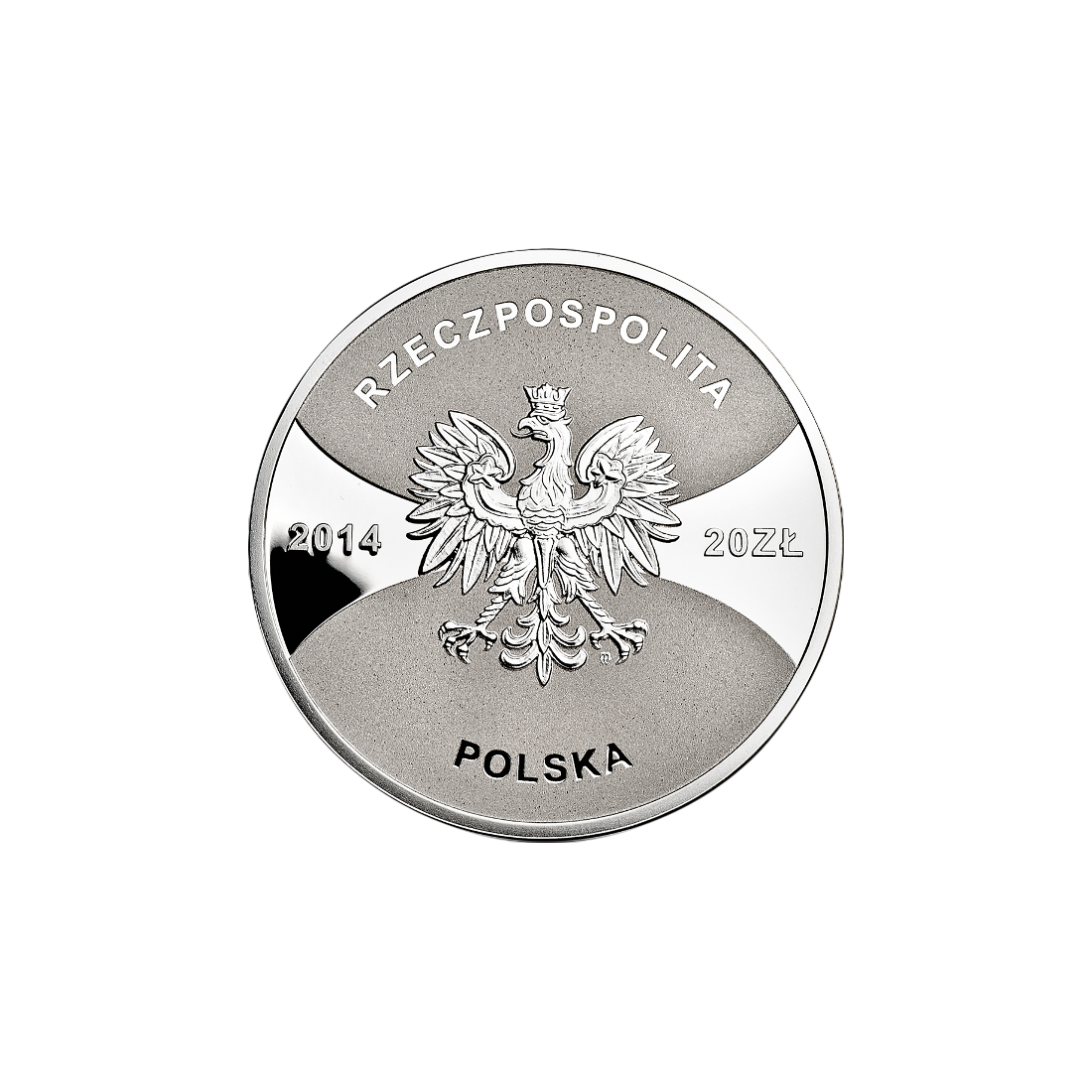 Awers monety przedstawia w centralnej części wizerunek orła zaczerpnięty z godła Rzeczypospolitej Polskiej. Po prawej stronie umieszczono nominał "20 zł", a po lewej rok emisji "2014". Wzdłuż górnej i dolnej krawędzi monety widnieje napis "RZECZPOSPOLITA POLSKA".