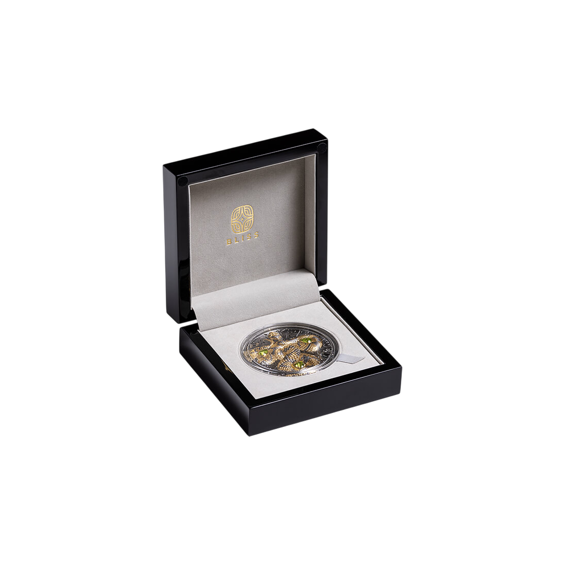 Srebrna moneta Wąż szczęścia (Bliss Snake) o wadze 5 uncji to jedno z najbardziej spektakularnych wydawnictw numizmatycznych zaplanowanych na 2026 rok. Ten unikatowy walor otwiera prestiżową serię Bliss, która redefiniuje pojęcie nowoczesnej monety kolekcjonerskiej, łącząc w sobie najwyższą próbę srebra, zaawansowane techniki mennicze oraz kunszt jubilerski. Wybór tego produktu to strategiczna decyzja inwestycyjna, oparta na rzadkości, innowacyjności i ogromnym potencjale wzrostu wartości w czasie.