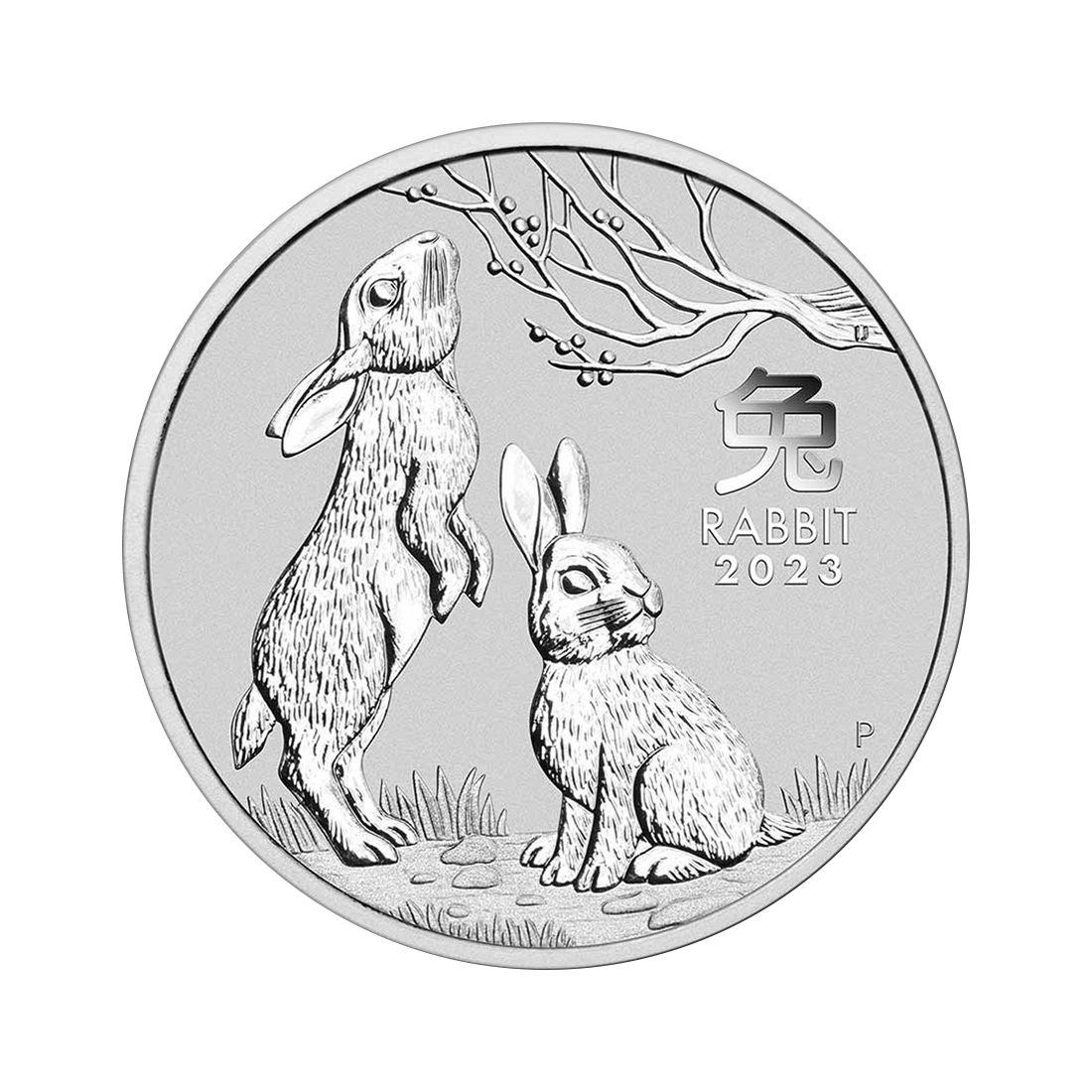 Rewers przedstawia dwa króliki, jednego w stanie czuwania, a drugiego sięgającego do pączkującej gałązki. Na projekcie znajduje się również chiński znak oznaczający królika, napis RABBIT 2023 oraz znak mennicy Perth Mint P. Awers ukazuje podobiznę Królowej Elżbiety II autorstwa Jody'ego Clarka, otoczoną datą, nominałem, wagą srebra i jego czystością.