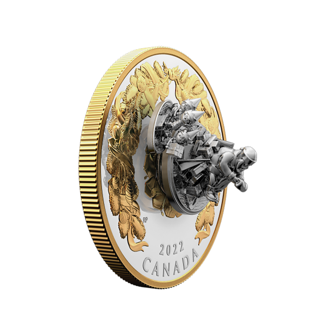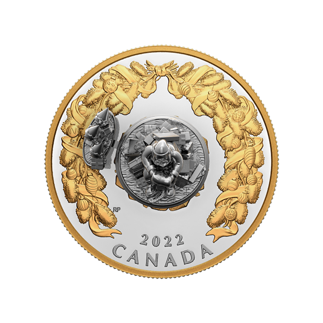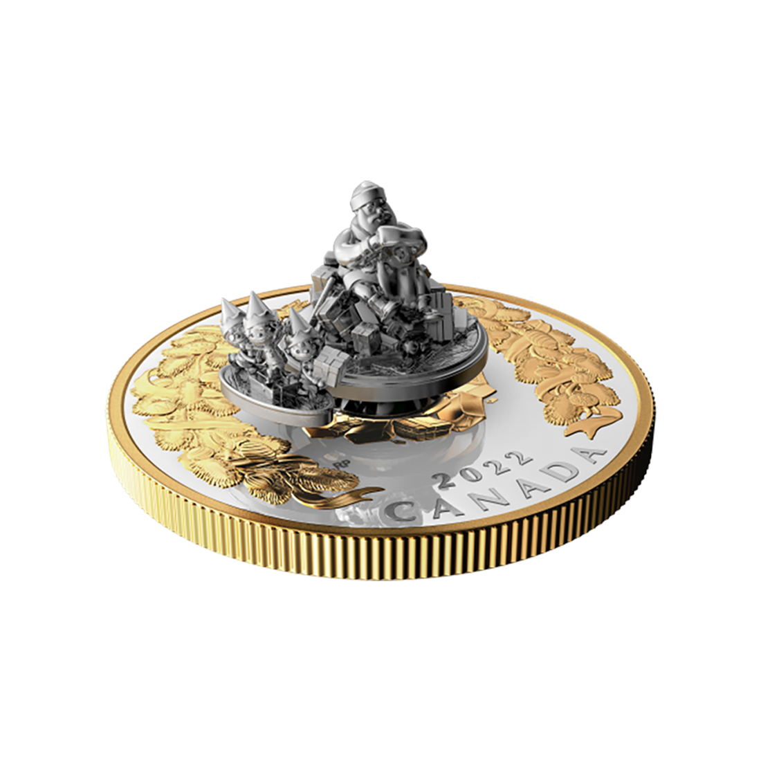 The Canadian mint has literally brought this coin to life – when tilted, the three busy elves begin to rotate around Santa Claus, who is seated among gifts and reading letters from well-behaved children.