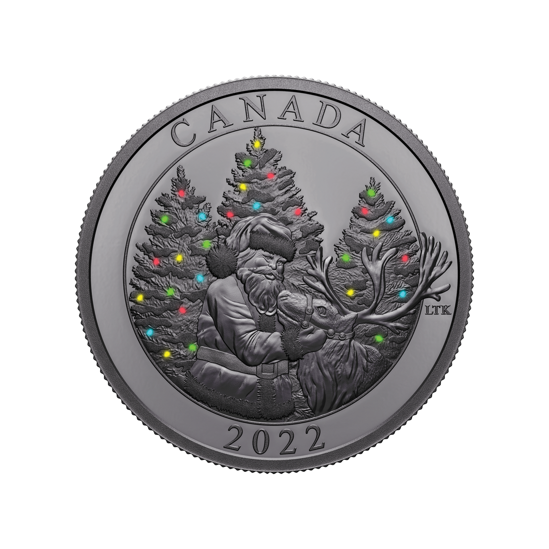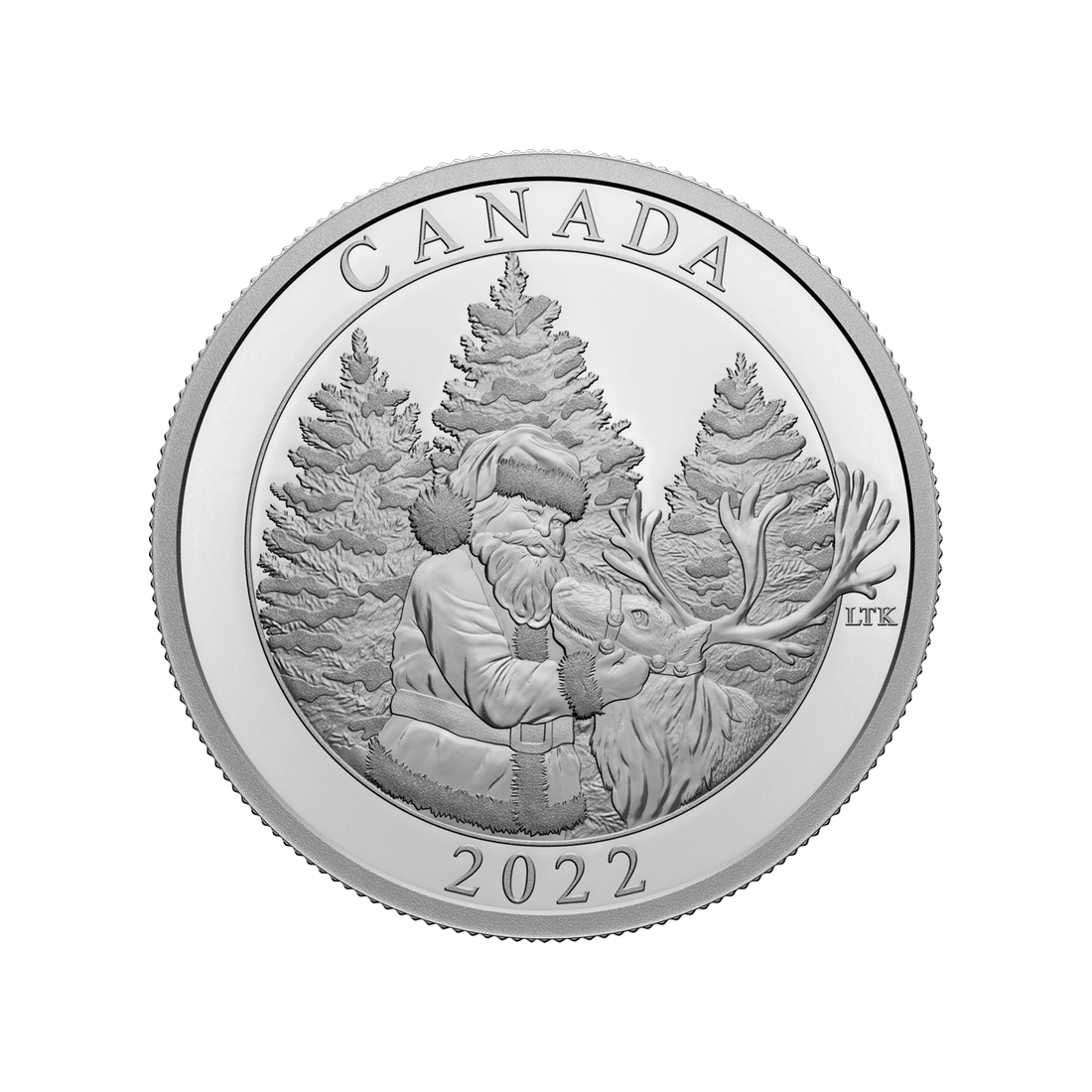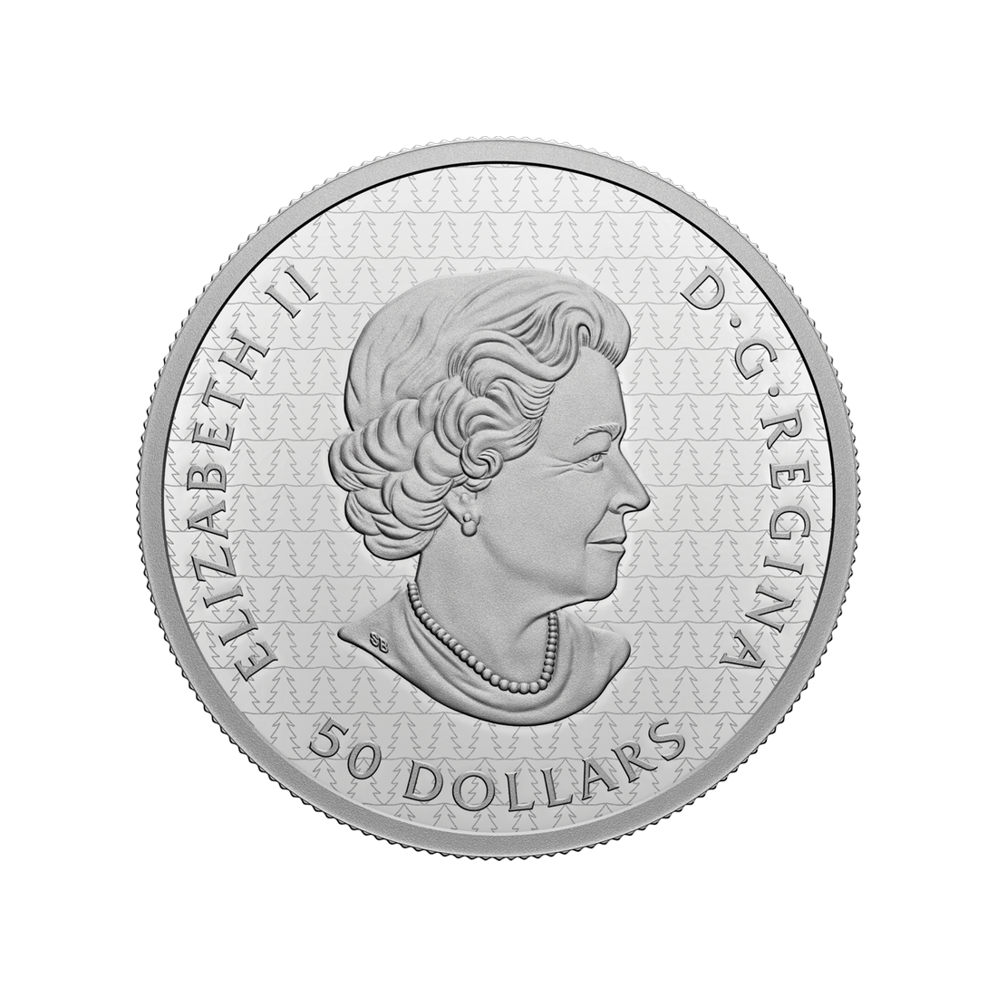 Awers monety to hołd dla Królowej Elżbiety II. Znajdujemy tu jej wizerunek w otoczeniu napisów: „ELIZABETH II” i „D.G. REGINA”, a także wartości nominalnej monety, wynoszącej 50 dolarów kanadyjskich. Portret Królowej autorstwa Susanny Blunt został umieszczony na misternym wzorze złożonym z małych choinek, co nadaje tej monecie dodatkowego uroku.
