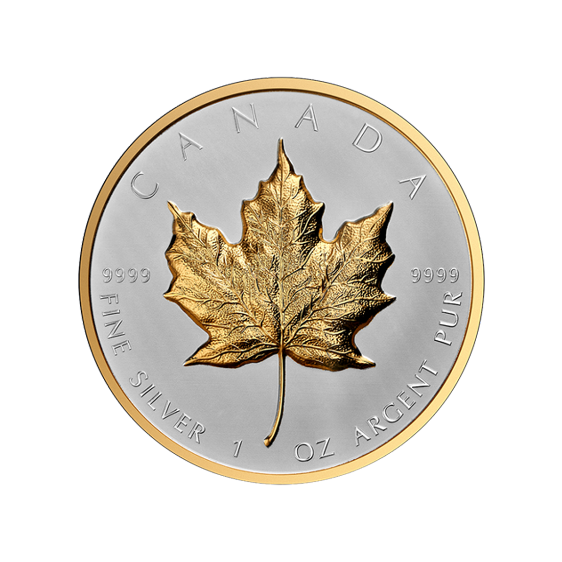 Warto również zwrócić uwagę na wyjątkowy design monety Kanadyjski Liść Klonowy Ultra High Relief. Na rewersie możemy podziwiać złocony liść klonu na matowym srebrnym tle. Ten kultowy liść został wybity w ultra wysokim reliefie, co oznacza, że wypukłości są znacznie większe niż na większości innych monet. Dodatkowo, wokół liścia umieszczono napisy "CANADA", "FINE SILVER 1 OZ OR ARGENT PUR" oraz próbę kruszcu "9999", co potwierdza najwyższą jakość materiału.
