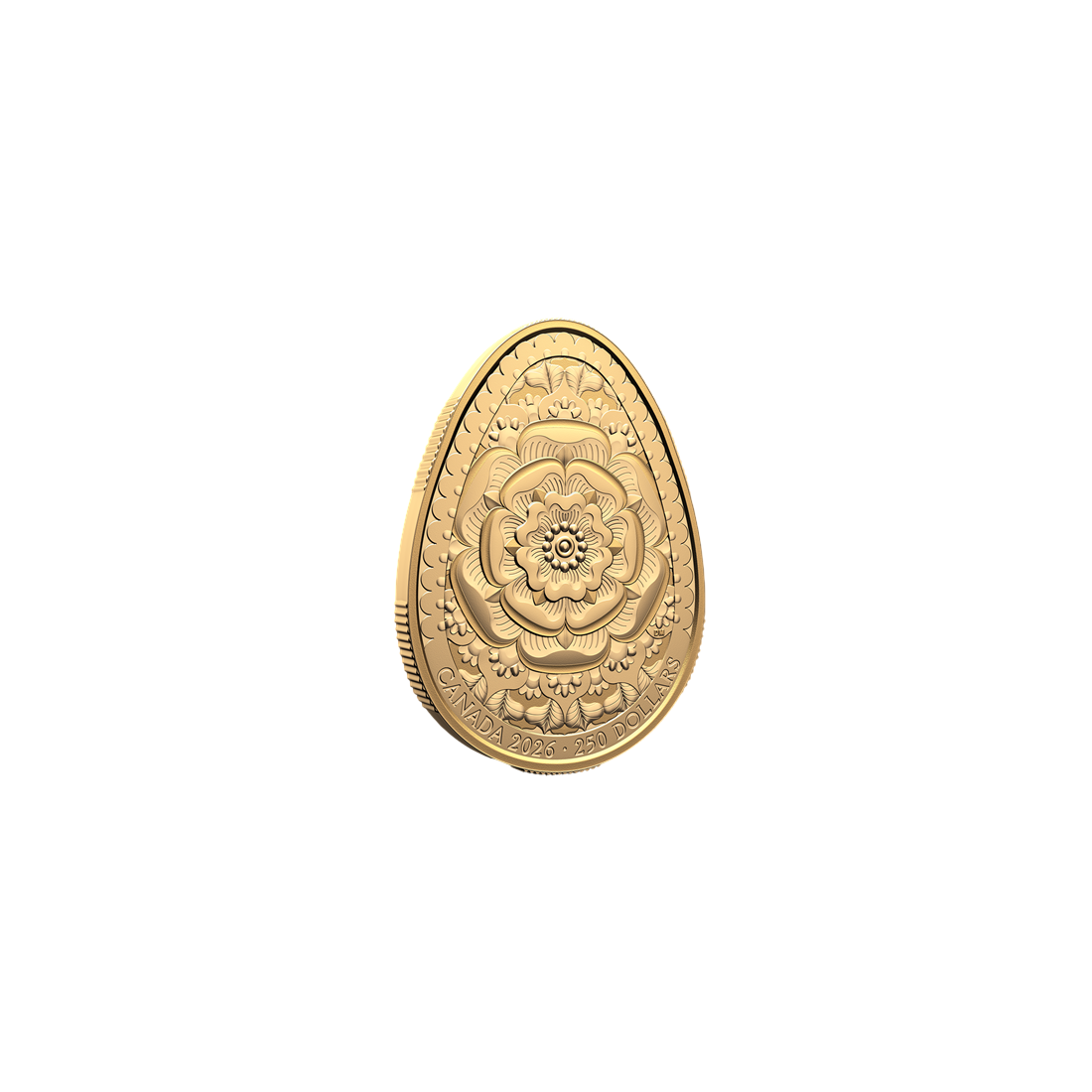 Moneta została wykonana z niemal 2 uncji złota najwyższej próby 999,9, co gwarantuje jej płynność na międzynarodowych rynkach metali szlachetnych. Jajowaty kształt numizmatu stanowi techniczne wyzwanie, któremu sprostać mogą jedynie najlepsze mennice świata. Precyzyjny grawer ukazuje motyw róży o wielu płatkach, symbolizujący harmonię, miłość oraz odradzające się życie. Detale zostały podkreślone lustrzanym stemplem typu Proof, który nadaje całości luksusowy charakter i wydobywa głębię projektu artystycznego autorstwa Dave’a Melnychuka.