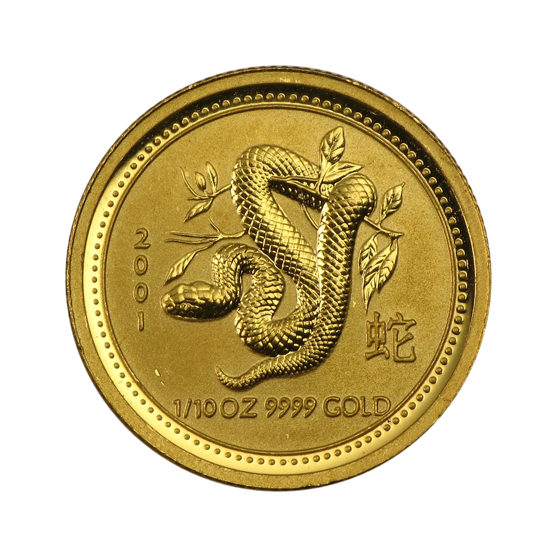 Złota moneta Rok Węża 2001 1/10 uncji - wysyłka 24 h!
